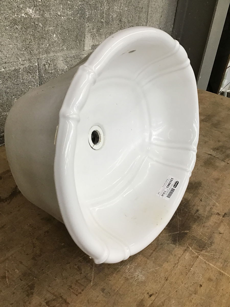 Adorable vintage porcelain drop-in bathroom sink circa 1992! Could use a new pop-up drain, but otherwise in great shape with no obvious cosmetic flaws. Elevated basin styling provides some extra charm that's versatile enough for a refined, elegant space or even something a little more fantastical! Cottagecore bathroom anyone??