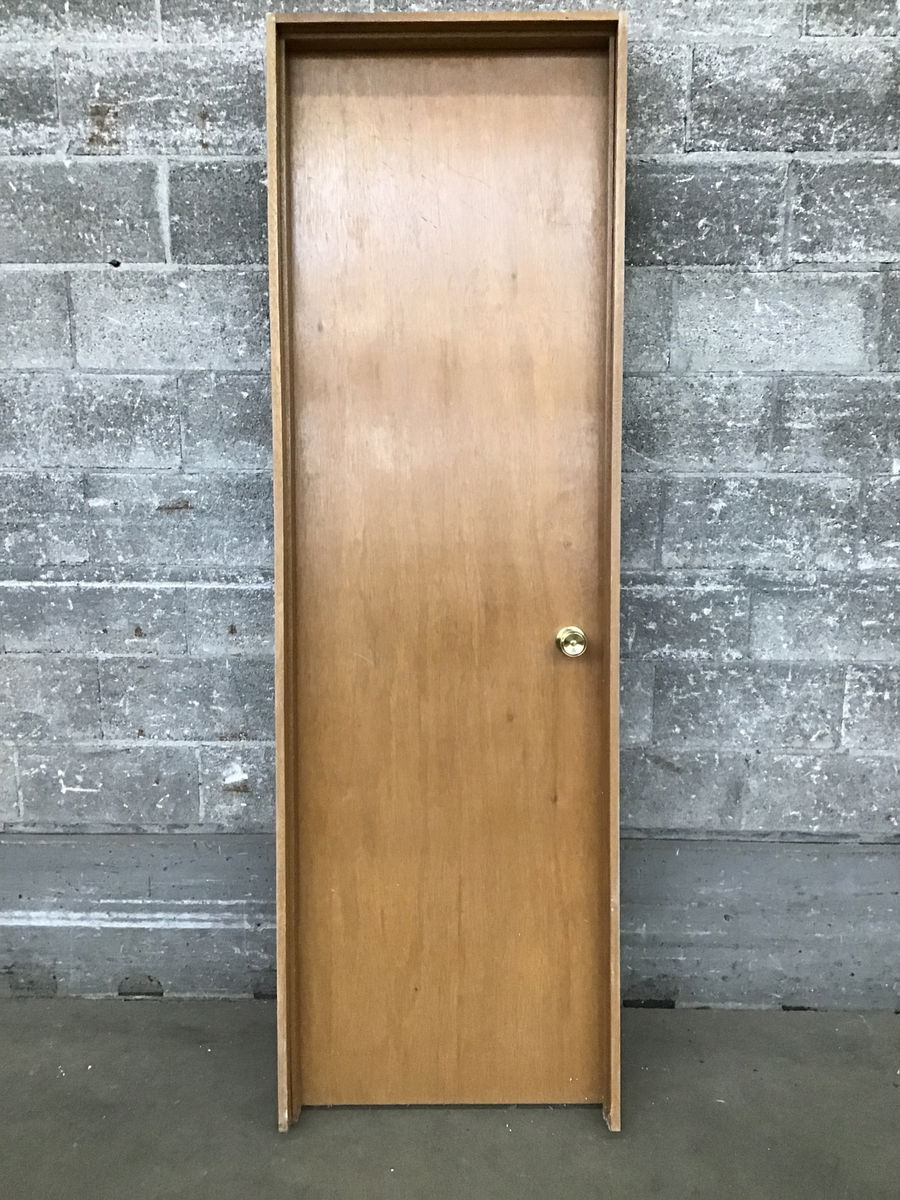 Cleanish, decent looking reclaimed stained mahogany hollow core door in mahogany jamb for 2x4 wall.