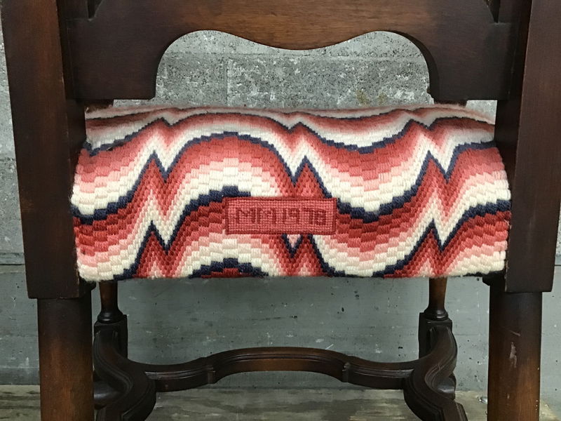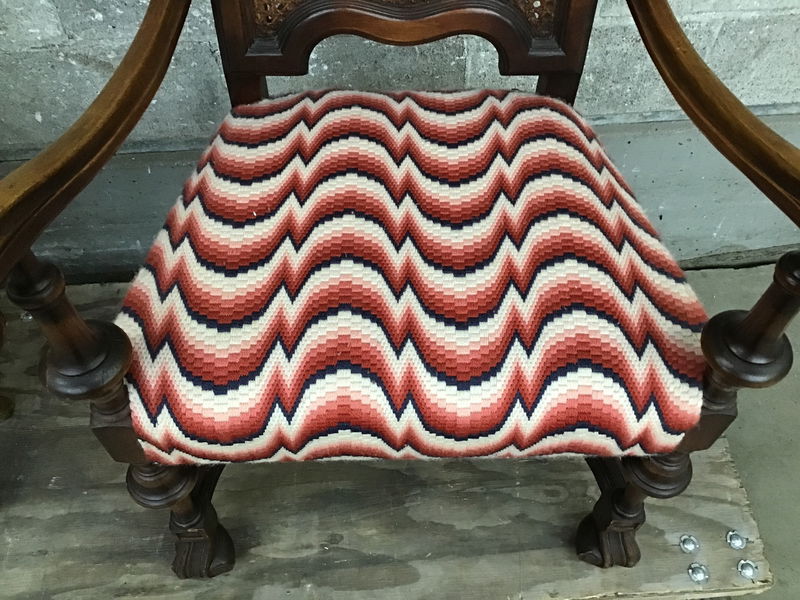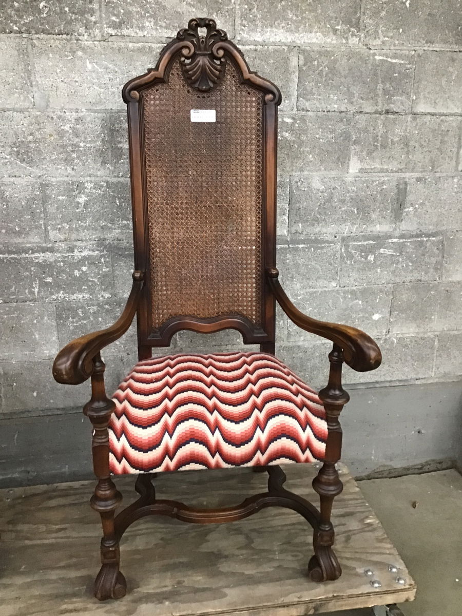 This is a interesting dining chair for sure. This chair has an extra high rattan back and a super groovy upholstery that sort of clashed with the elegant mahogany skeleton of the chair but, personally I love it!