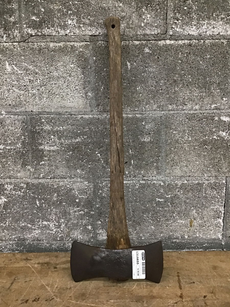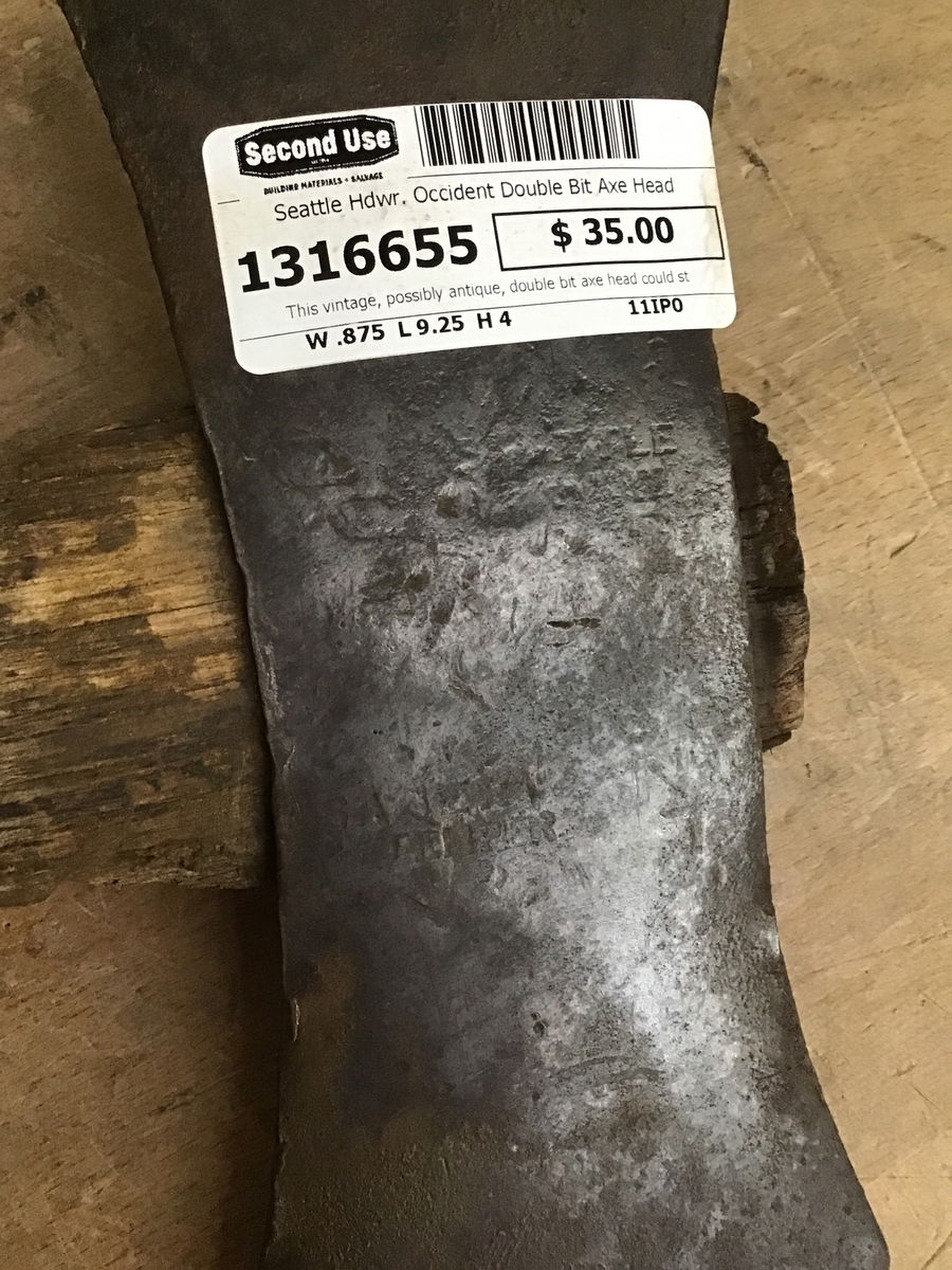 This vintage, possibly antique, double bit axe head could still be in usable condition if sharpened, but I called it rough because the Seattle Hardware Co. "OCCIDENT" Saber Temper logo is beat to crap, unfortunately. It's there if you know what you're looking for and might be brought out a little more with some time in an electrolysis tank. Price reflects condition. Handle NEEDS to be replaced.