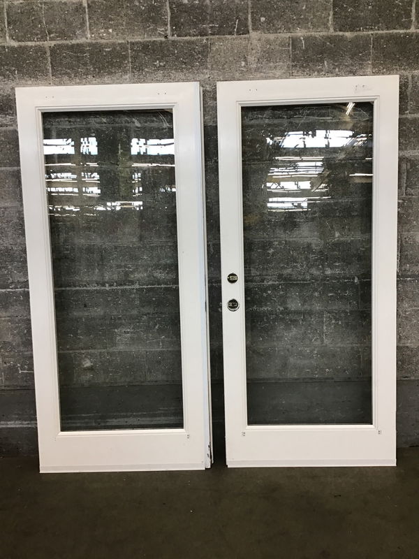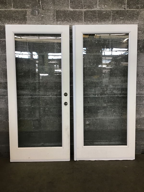 Pair of exterior French doors with fiberglass faces. Widths are a bit wider than standard, note dimensions listed.