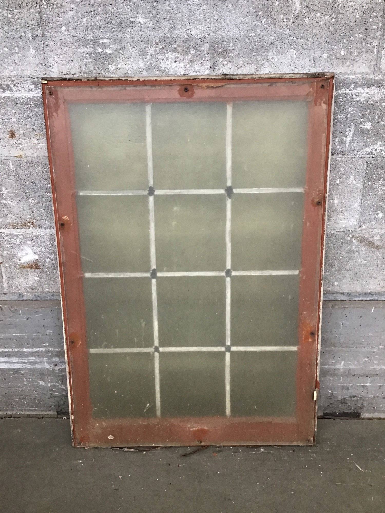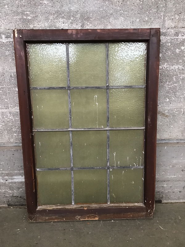 This stunning piece of stained glass was delicately salvaged from a church-turned-mosque and brought here for you to enjoy! This window features 12 panes, all are a subtle yellow with a pleasant wavy texture. Came to us with a sheet of plexiglass mounted to one side, which can easily be removed. Framed with vintage fir, frame may need some reinforcing given its age.