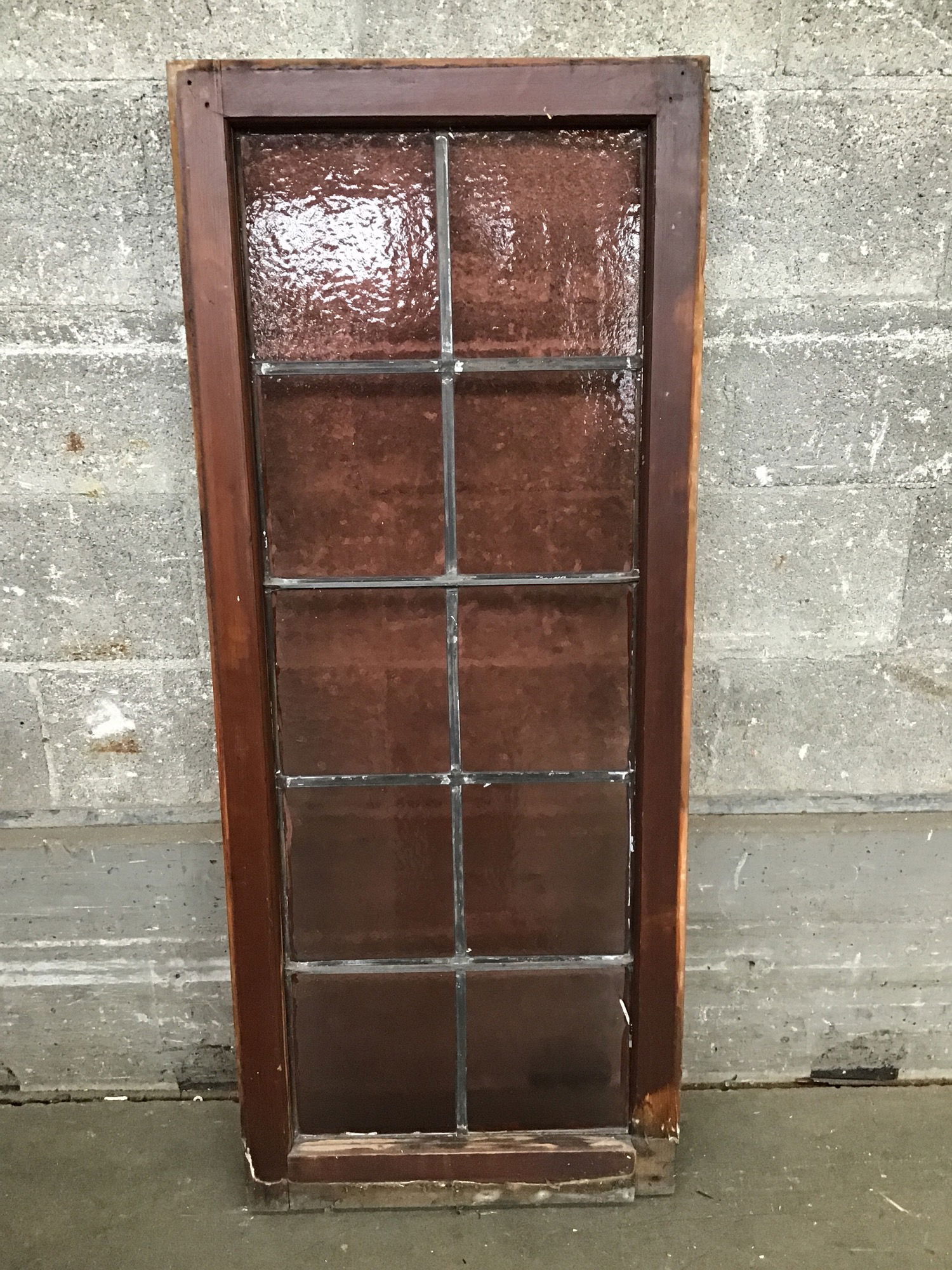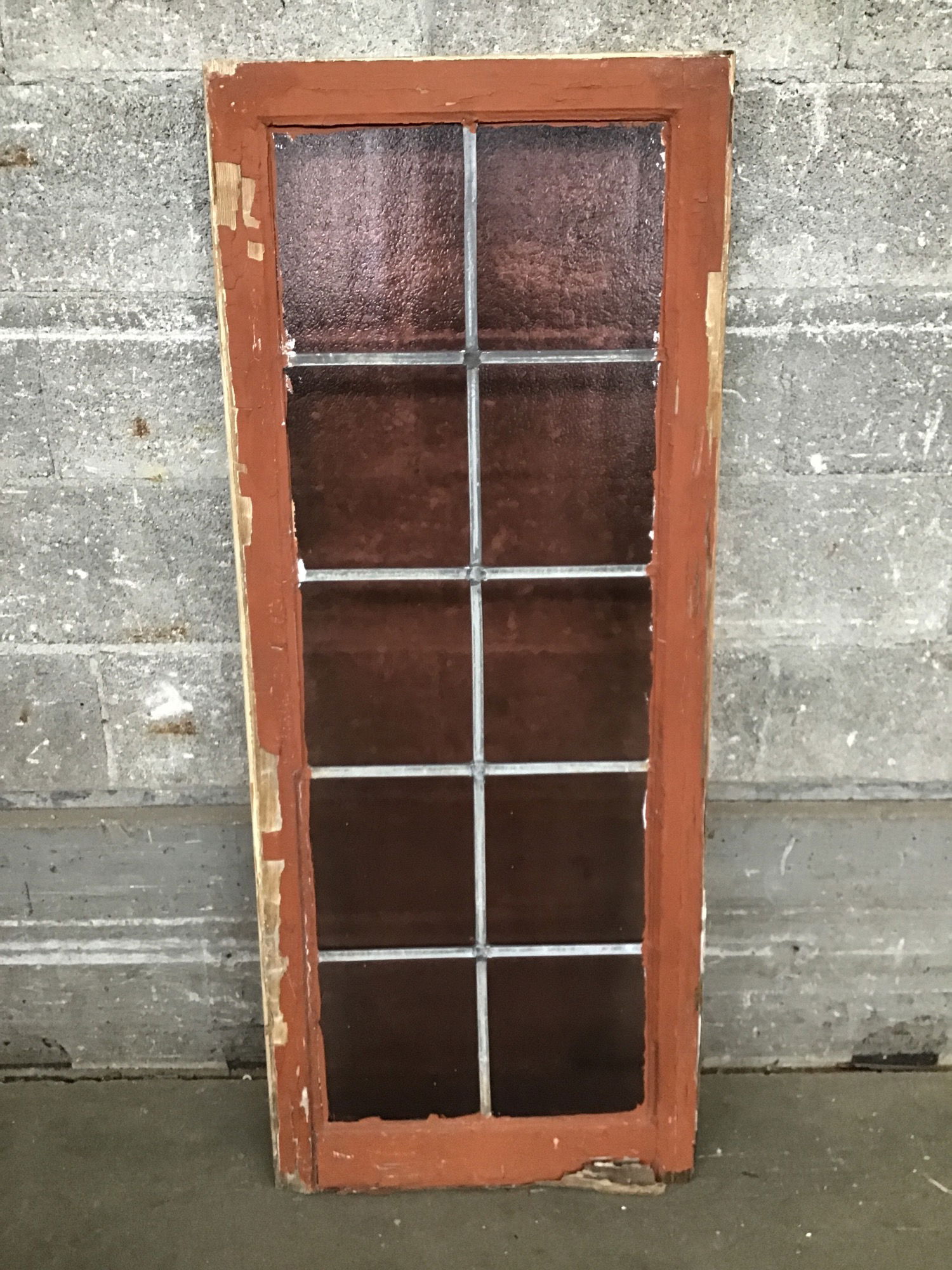This window was delicately salvaged from a church-turned-mosque and brought here for you to enjoy! Features 10 true lead-divided panes, all are a deep rosy color with a couple different textures. Framed with vintage fir. Frame has some damage near the bottom, price reflects condition.