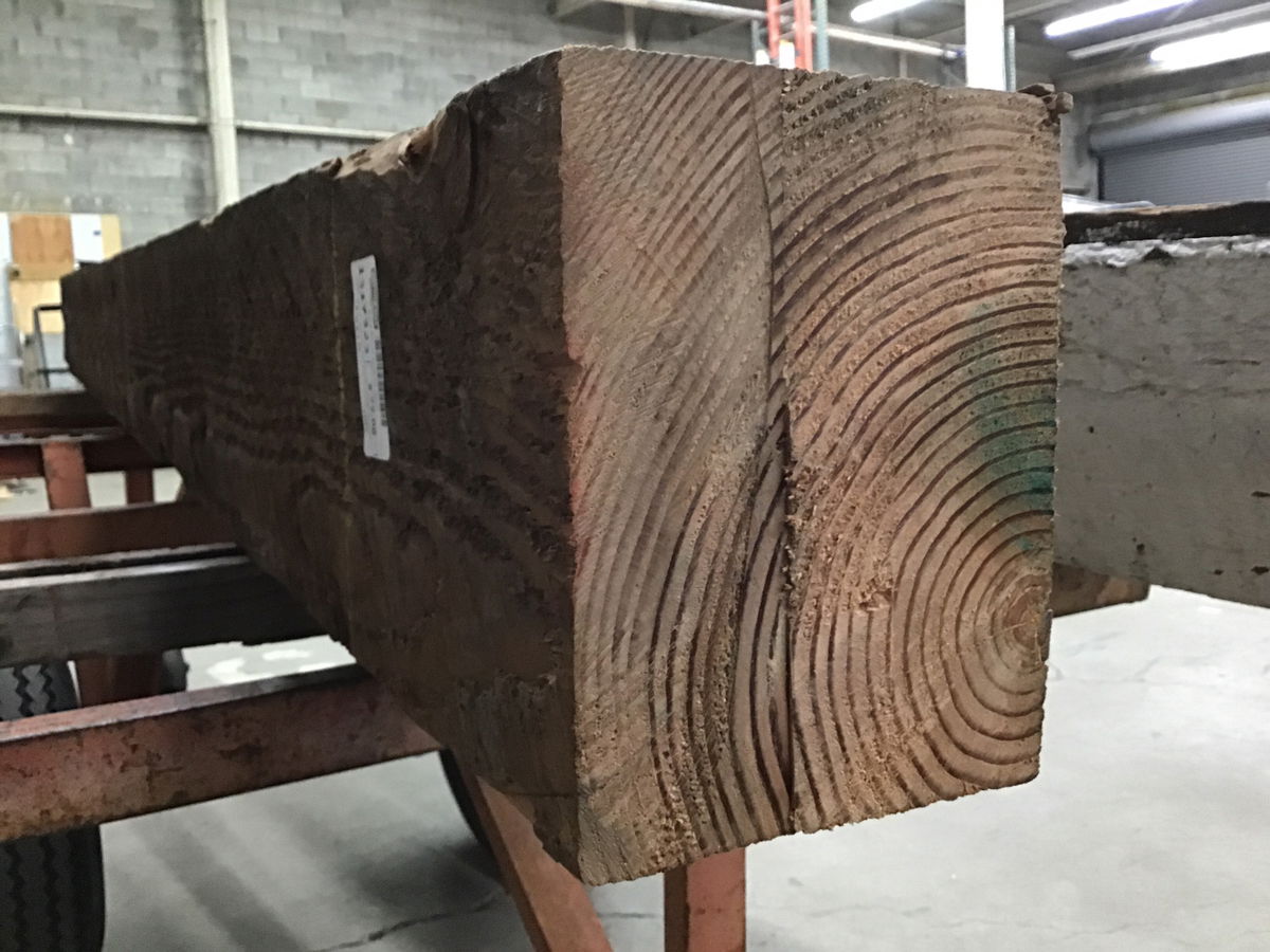 Rough-sawn 6 x 8 fir beam with tons of character. Coarse grain with some knots throughout. There may be a couple fasteners hiding in here, but most have been dealt with. Has a notch cut at one end, length measurement listed stops just short of that notch. So be aware for transport, actual beam is longer than length listed.