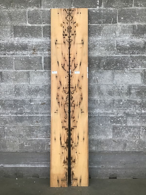 Locally milled & kiln dried. Mostly Fir and Hemlock, sometimes a few Spruce come in. These have amazing bore channels that come from the notorious teredo clam. These saltwater clams spend their entire lifespan in these logs creating their tunnels, that rarely intersect. The raw stock logs (before milling) originally used as boom surrounds in antiquated timber transport. These logs used to be left to rot in coastal towns before our supplier took it upon himself to repurpose them. Very unique stock, teeming in NW history. Very popular as decorative siding. The number of bore channels varies from board to board, depending on what your project demands.