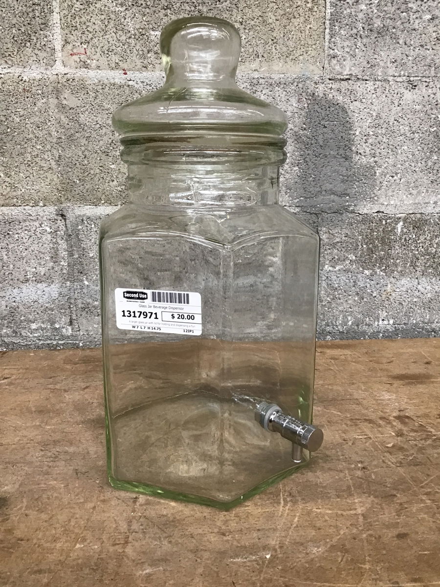 A larger glass jar with lid for holding and dispensing a fun beverage of your choice. It looks to hold about a gallon of liquid.