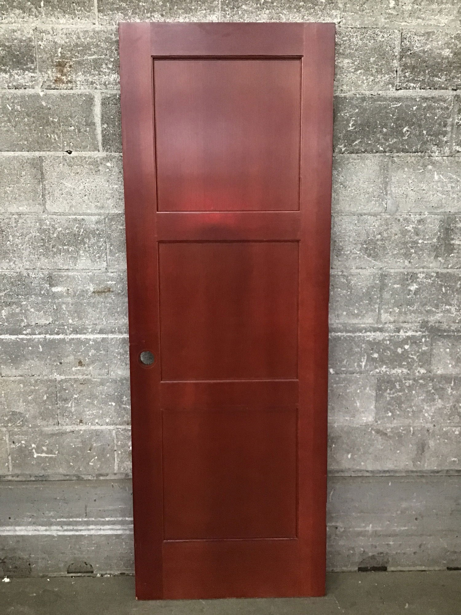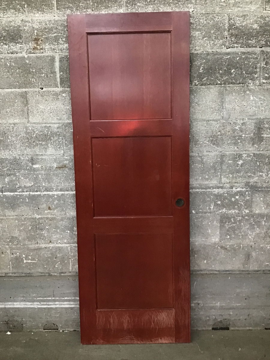 3 panel fir door with an attractive cherry-ish stain. Some minor cosmetic wear but great condition overall.