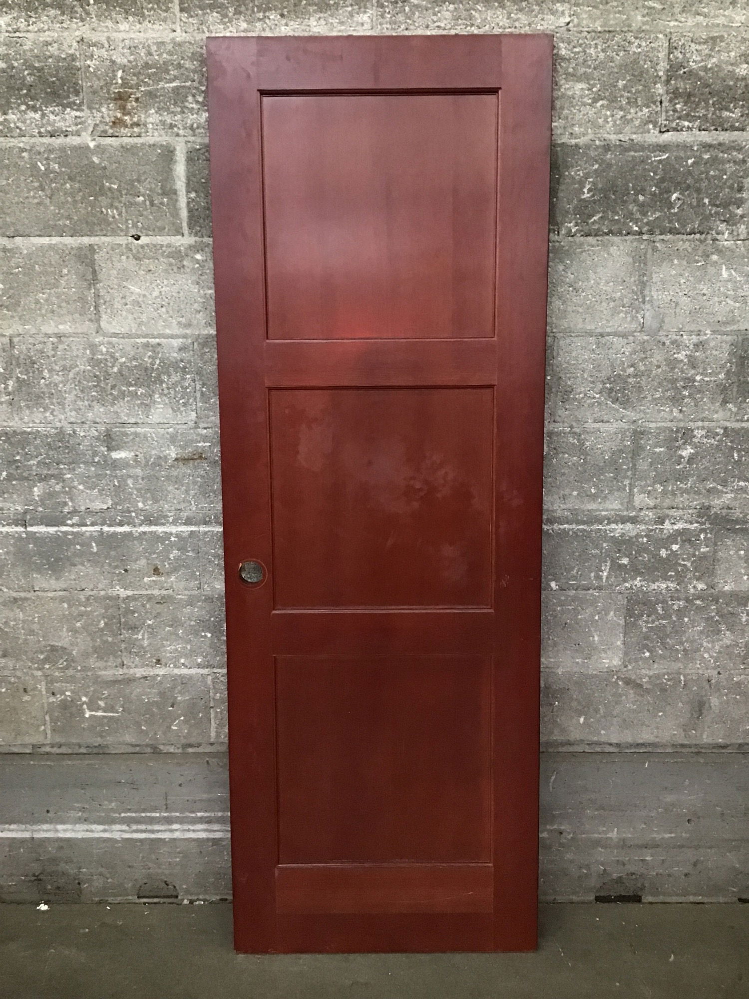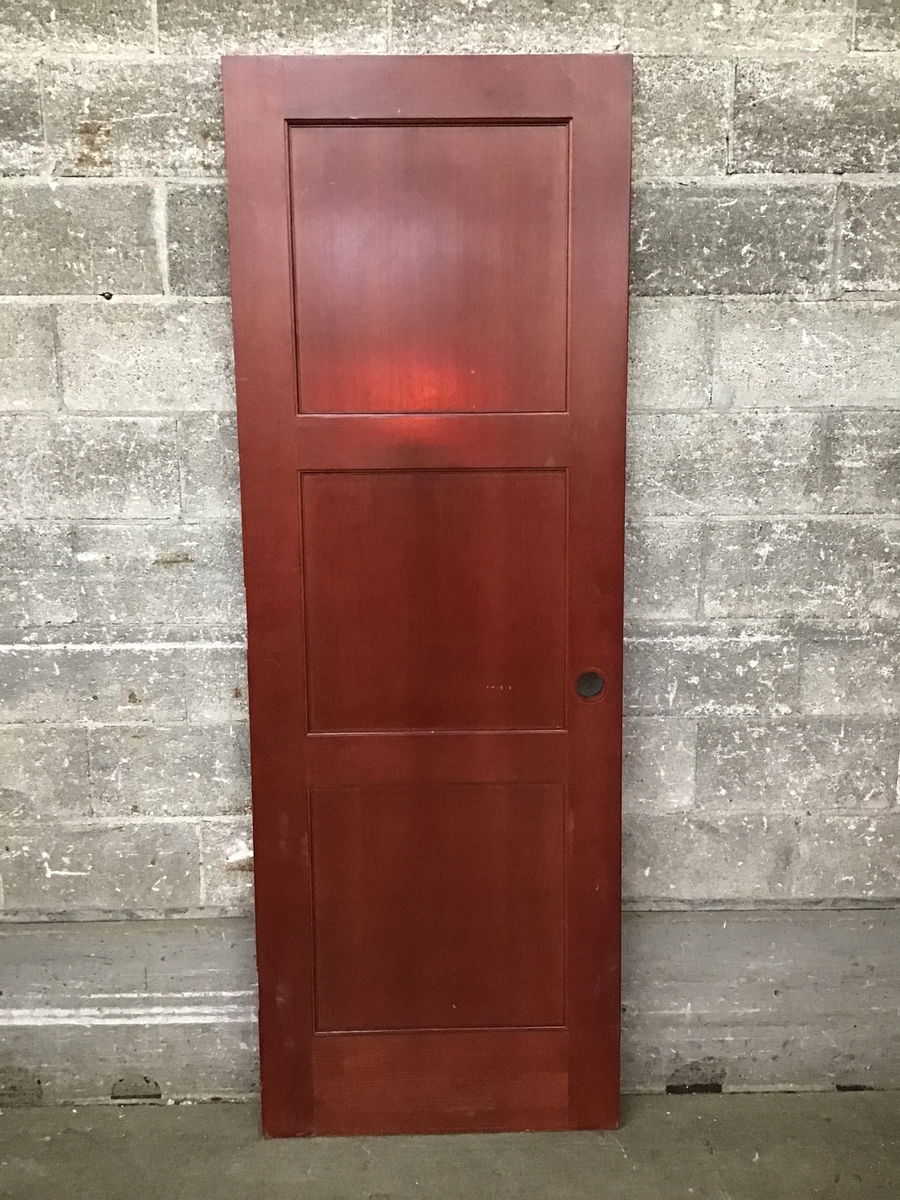 3 panel fir door with an attractive cherry-ish stain. Some minor cosmetic wear but great condition overall.