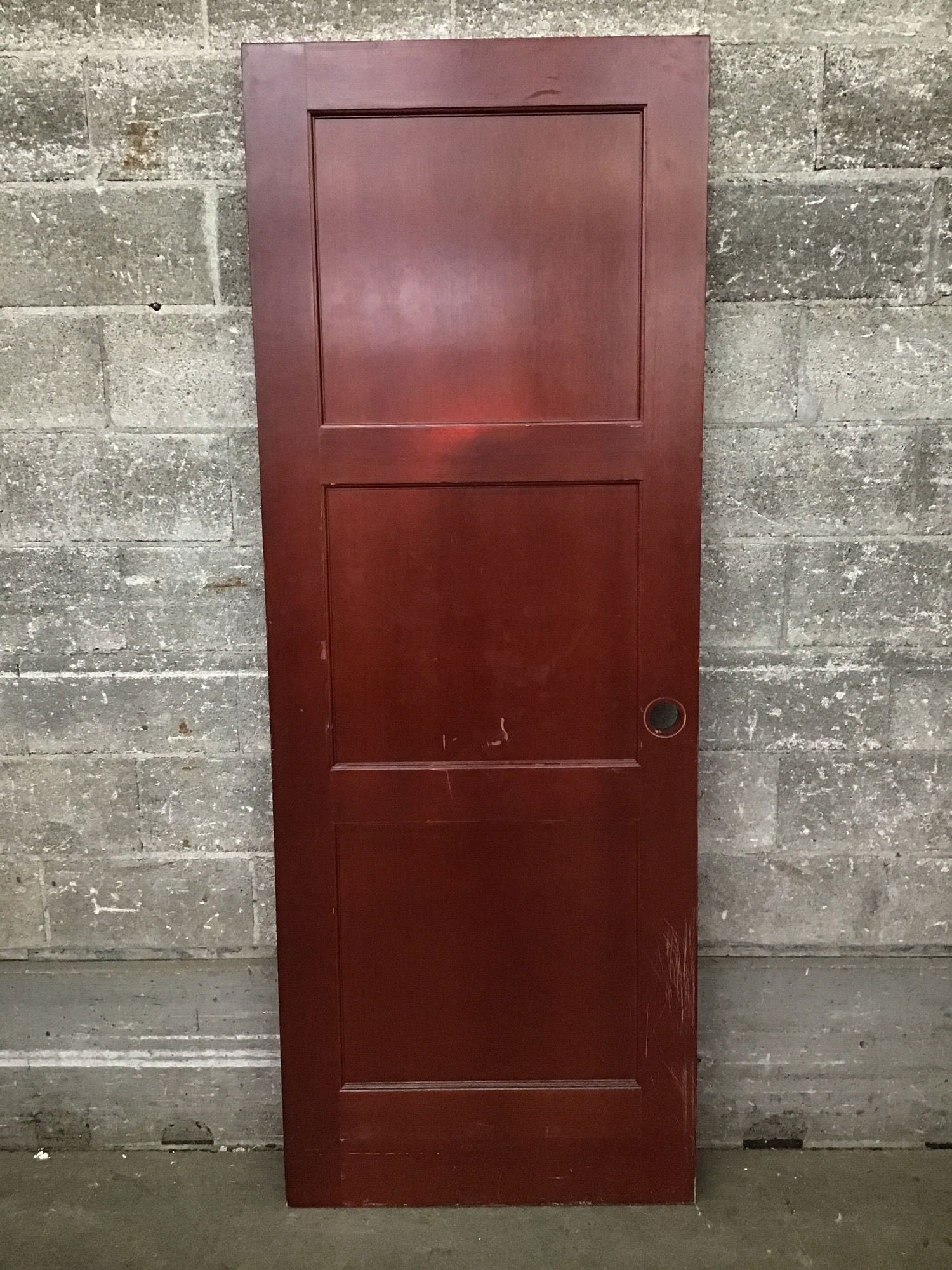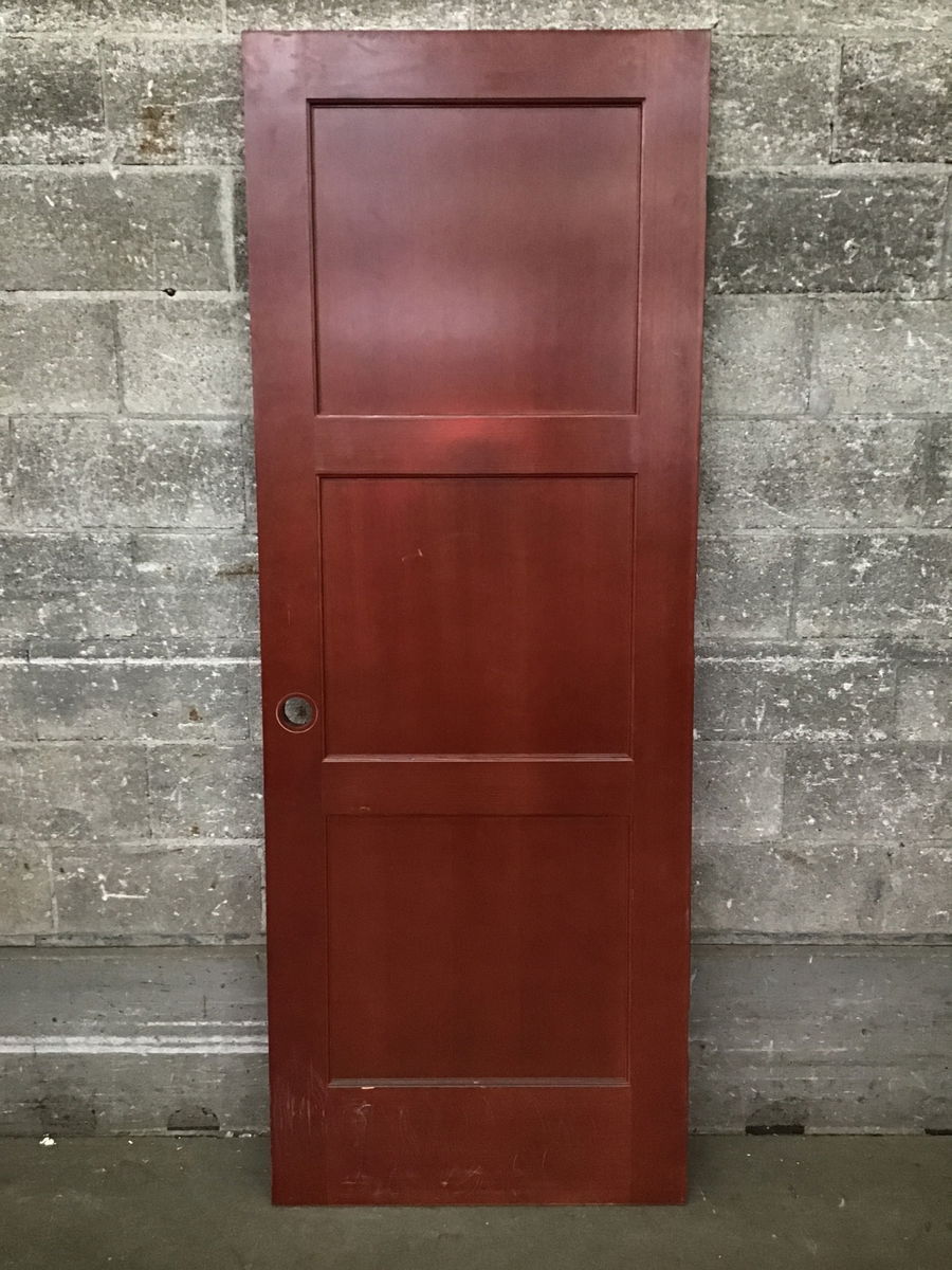 3 panel fir door with an attractive cherry-ish stain. Some minor cosmetic wear but great condition overall.