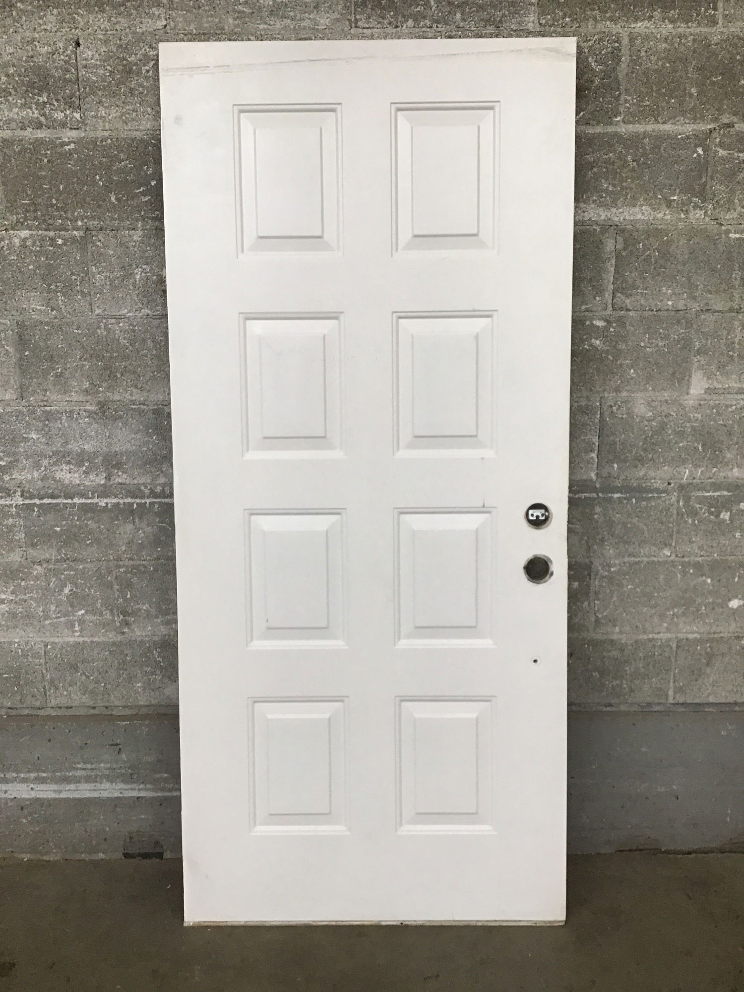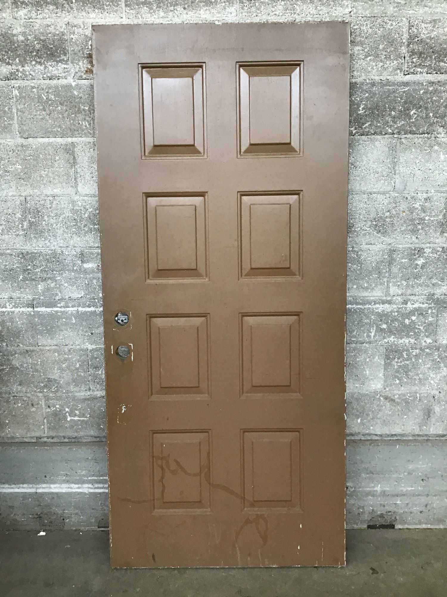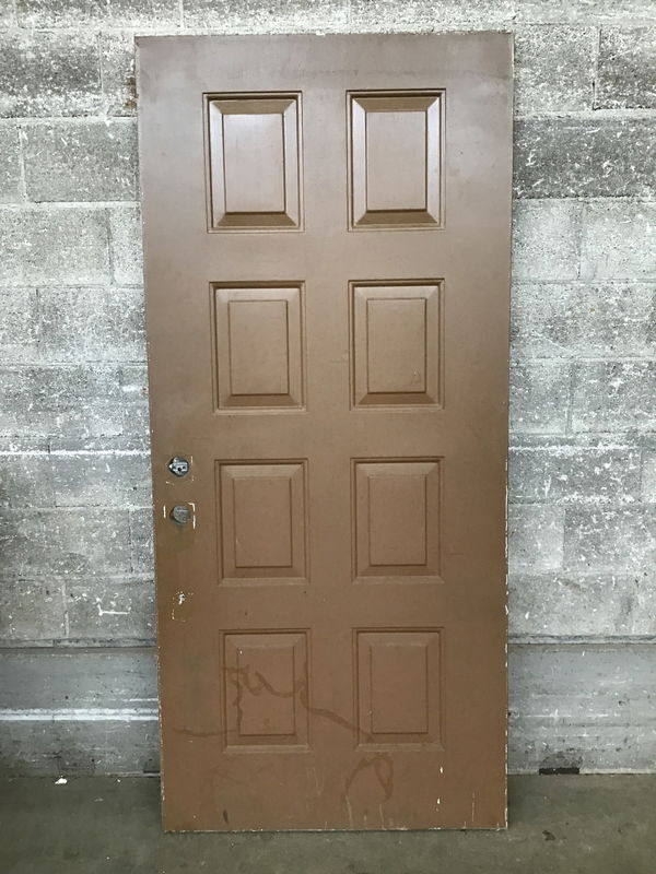 Utilitarian steel door with faux paneling, perfect for a garage.