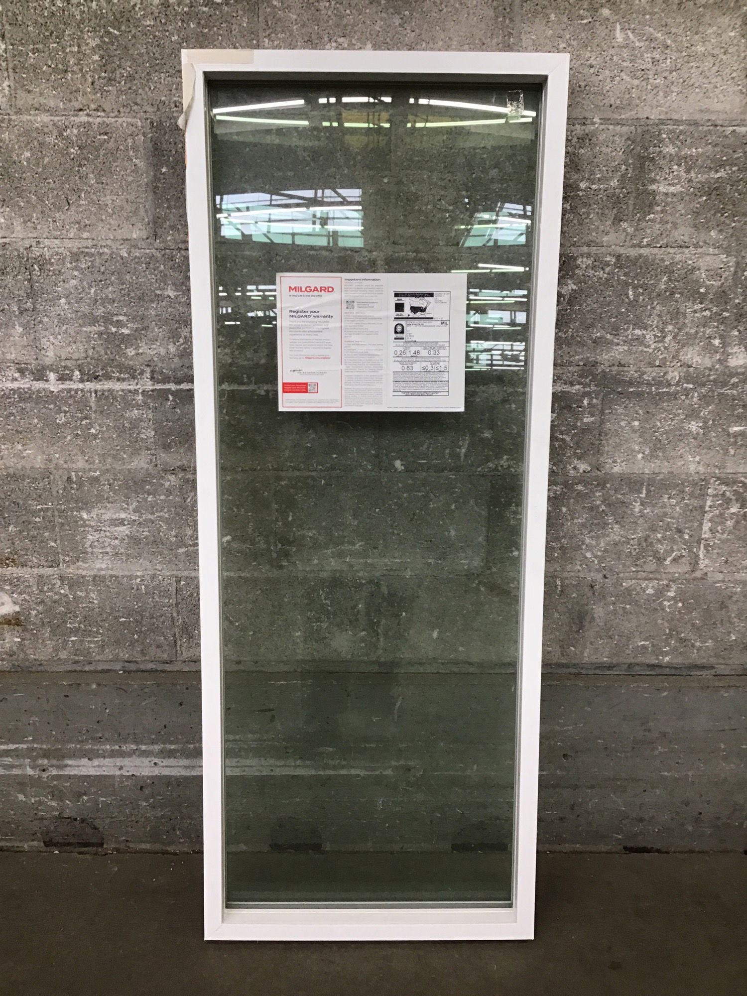 2023 Milgard fixed window with energy label.