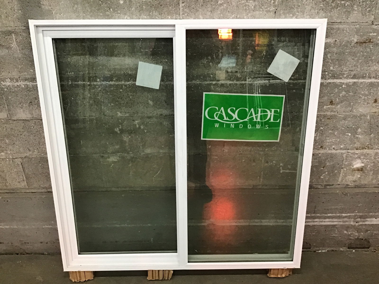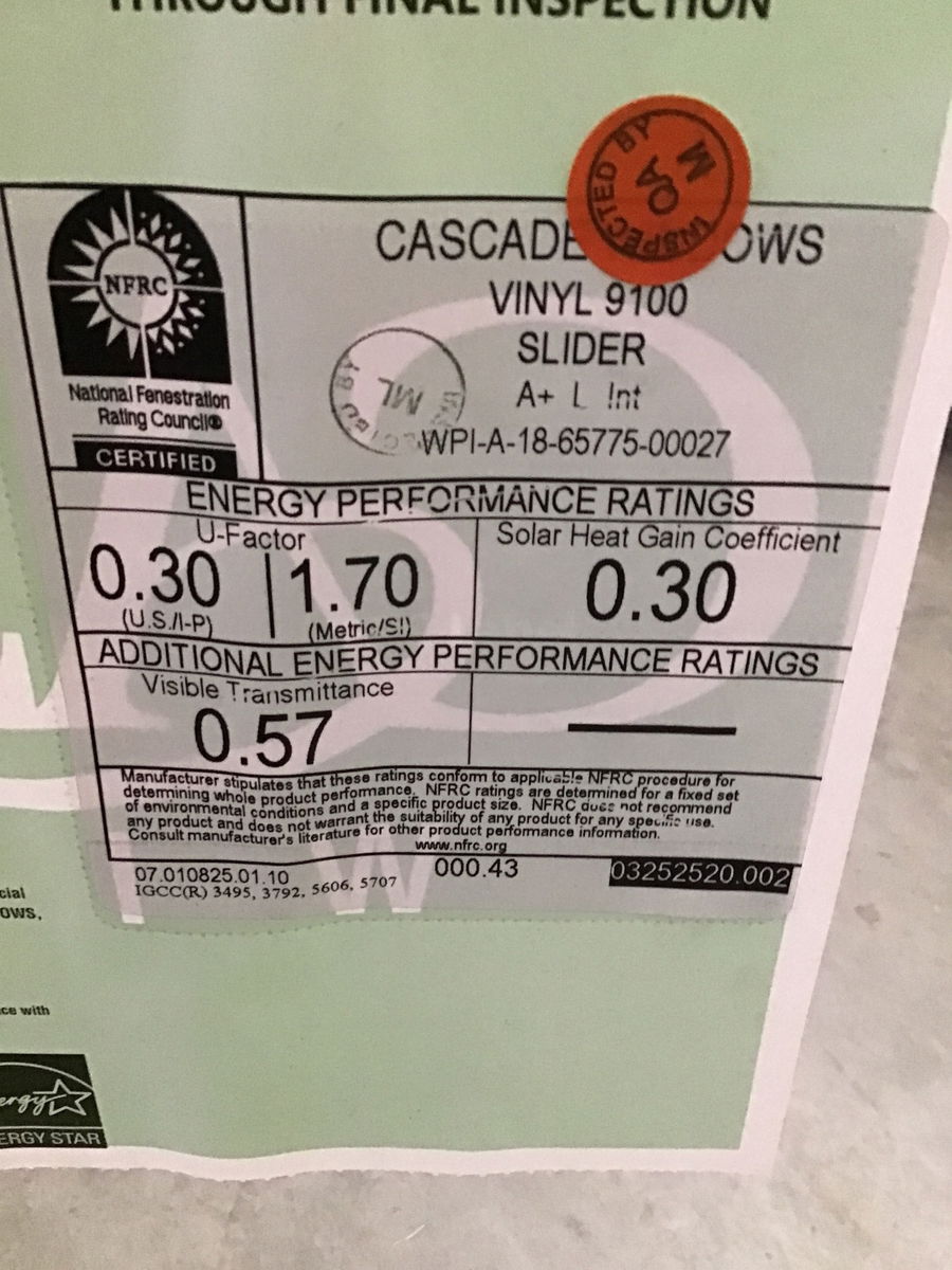 2025 Cascade brand white vinyl slider window with energy tag. Like new condition and appears to have never been installed.