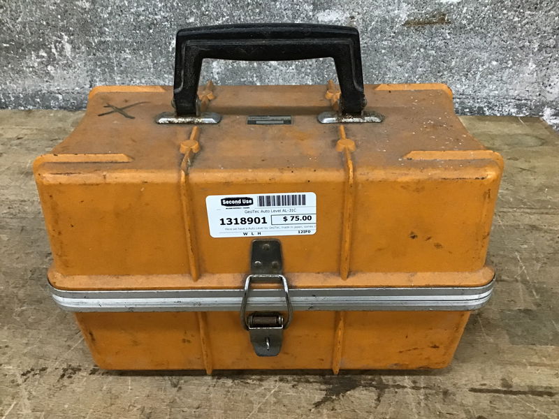 Here we have a Auto Level by GeoTec, made in japan, comes in a orange hard case, model AL-31C, Serial No. 426329. Includes some maintenance hardware and a plumbob.
