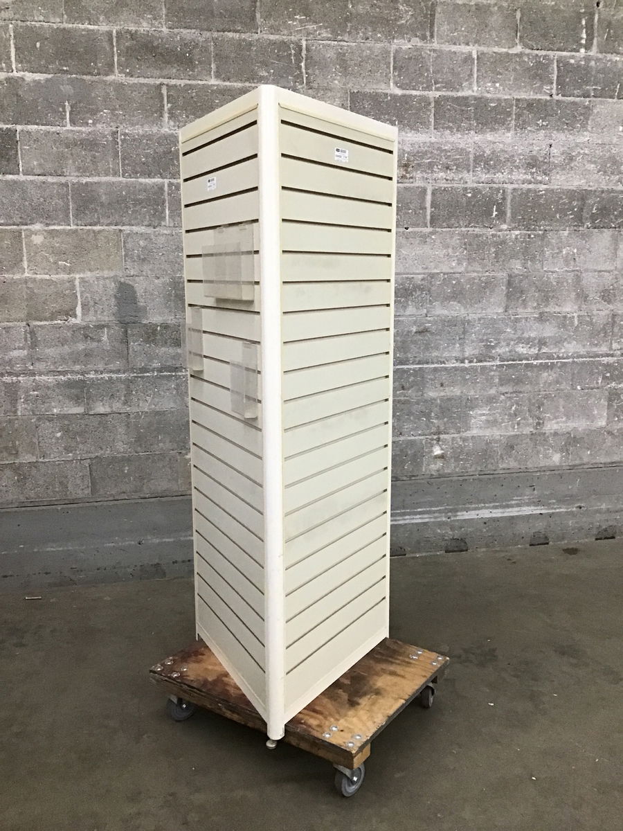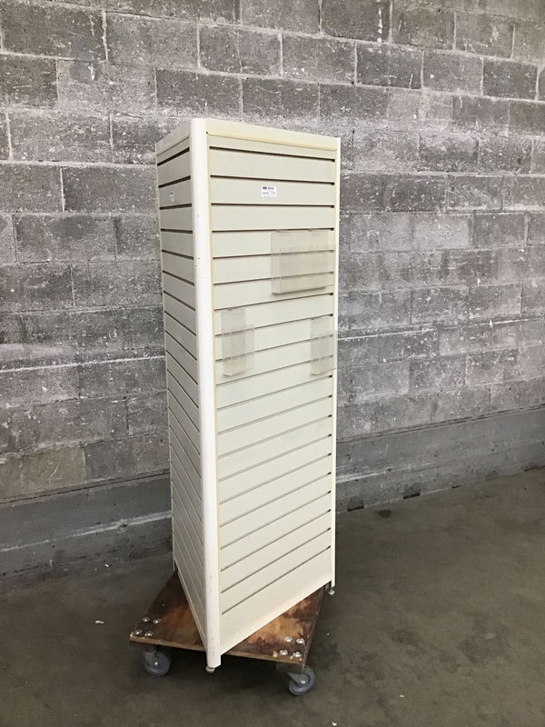 This is a retail display rack with slats to hang stuff on. Comes with a couple of acrylic display pieces.
