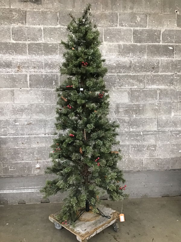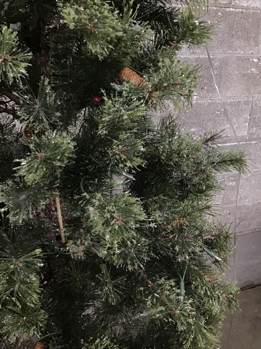 A super cute li'l Christmas tree, just in time for the holidays! It's more than just a simple, bare fake tree, this baby's adorned with faux frost, pine cones, and little berries of holly through its four pieces (including the base stand)- you barely even need to get any ornaments for it!