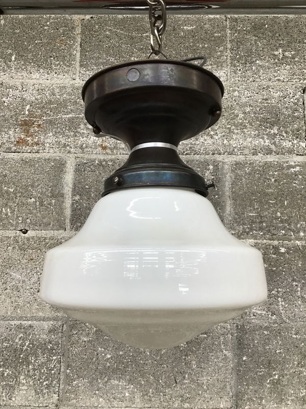 Small vintage schoolhouse light with nice detailing in the shade. Has a newer socket.