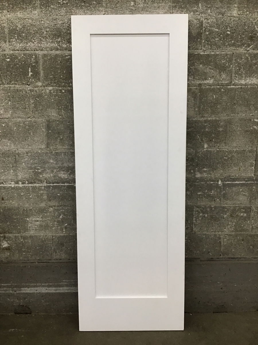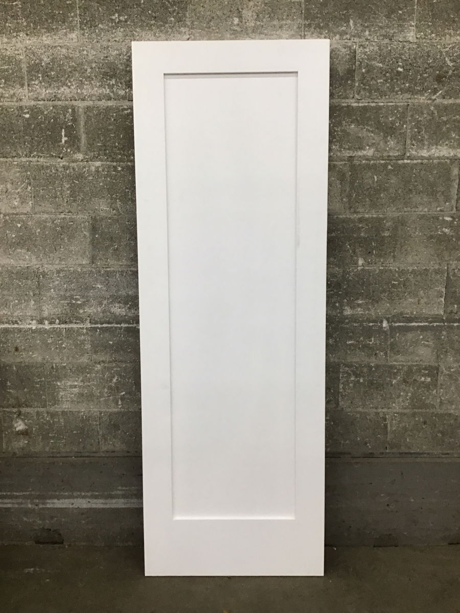 Undrilled and unfinished primed masonite interior door with a single panel. Item may have cosmetic damage.