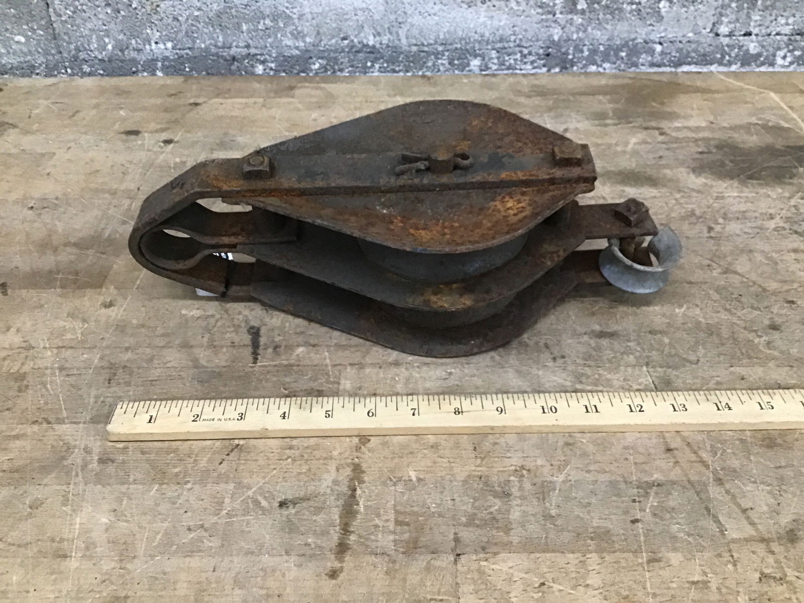 World War II surplus steel pulley Photo may be representational.