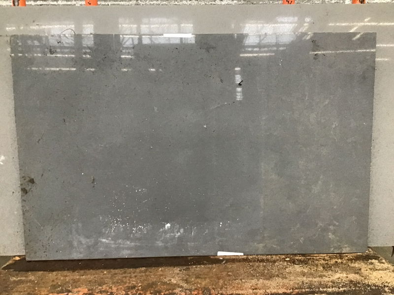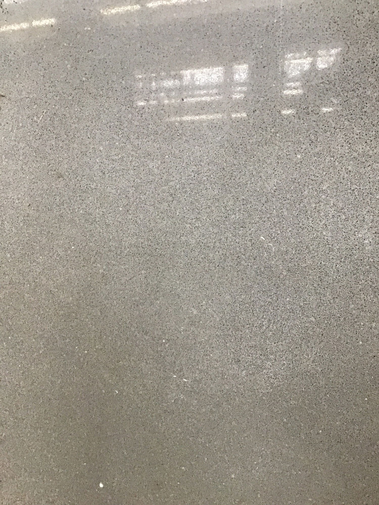 Small slab of handsome grey composite stone countertop with bullnose along shorter edges.