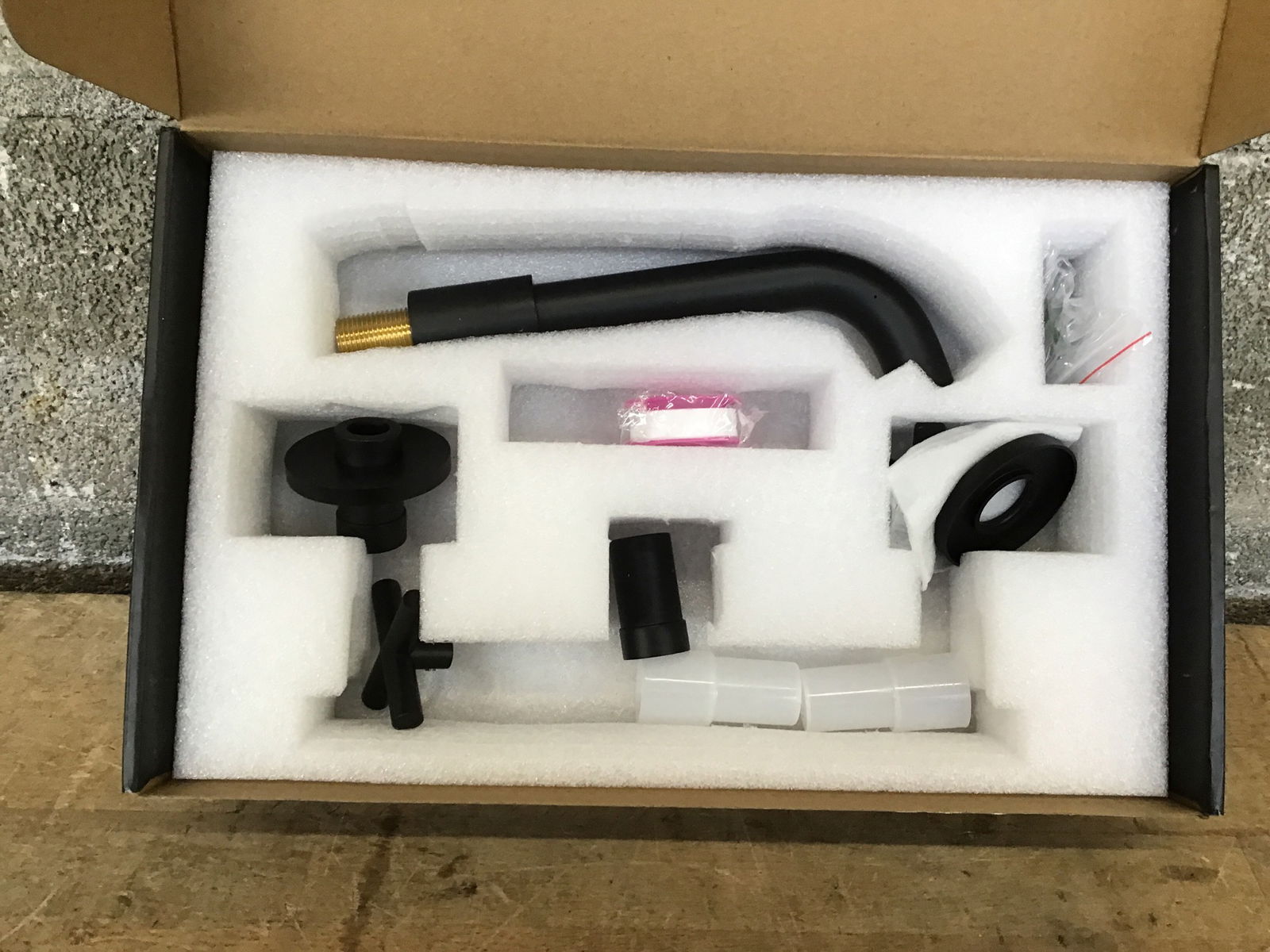 Wall-mount bathroom faucet with matte black finish. Features cross handles and a long spout to play nice with a variety of sink setups. This is just the faucet assembly, does not include drain or mixer valve.
