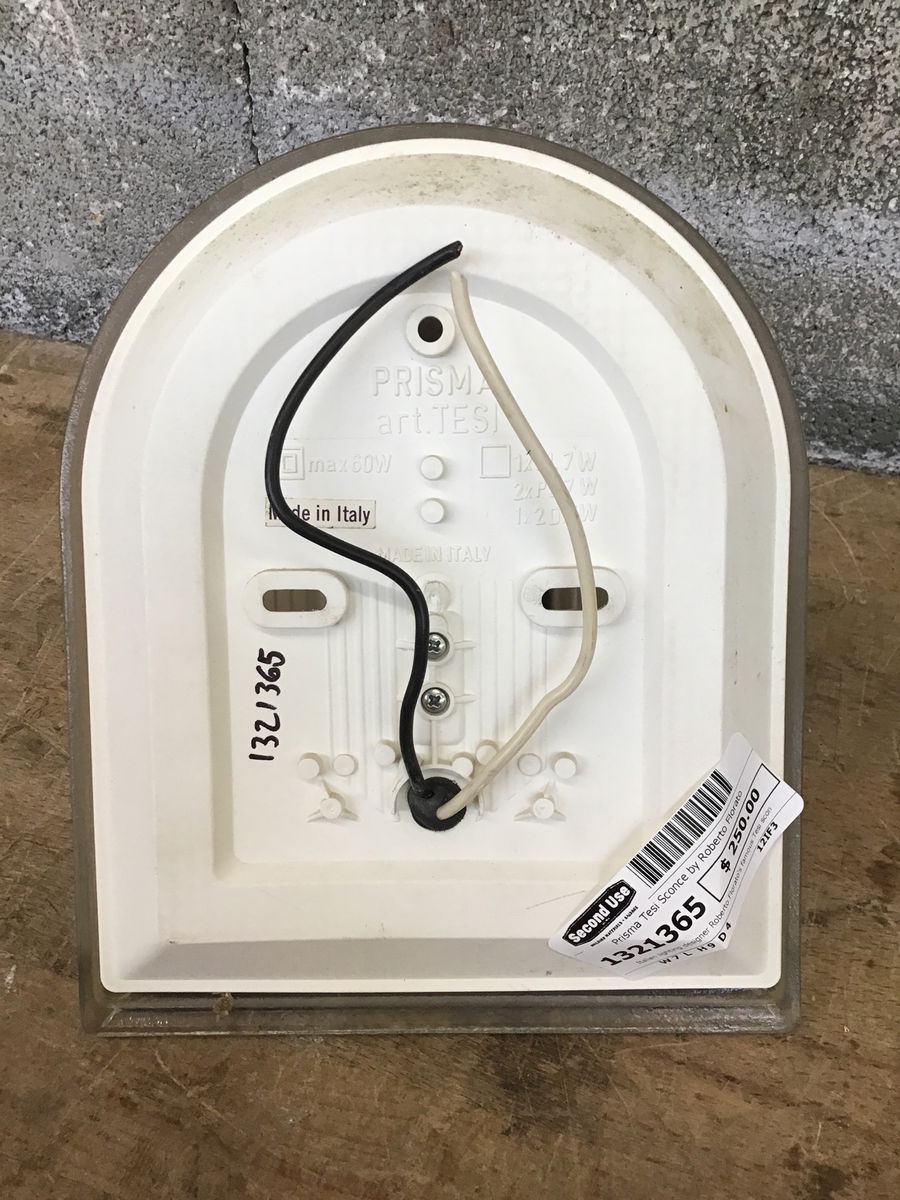Italian lighting designer Roberto Florato's famous Tesi sconce for Prisma. Get the height of 80's style! Missing original mounting screws, price reflects. Extra mounting cap to cover missing mounting screw cover at Customer Service.