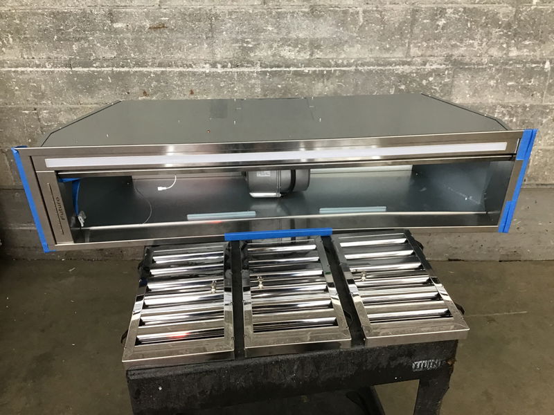 This is a brand new 2024 Futuro vent hood made in Italy. This vent hood features variable speed fan and an LED light. Comes with new grease traps.