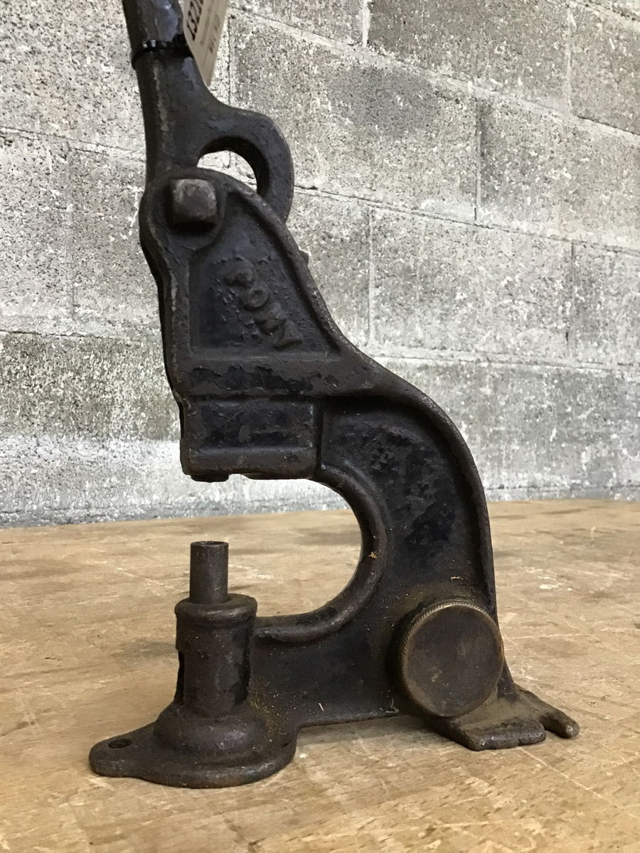 This is an antique Pony cast iron rivet setter made in 1909! This tool was used to set rivets, commonly used by saddle makers and leather workers in the 1900's. This one seems to still operate smoothly.