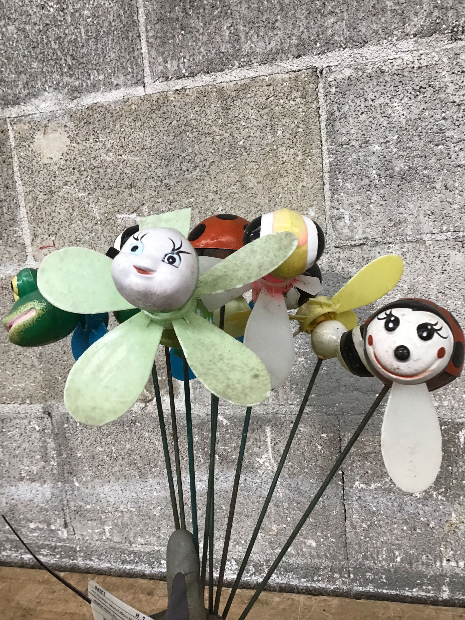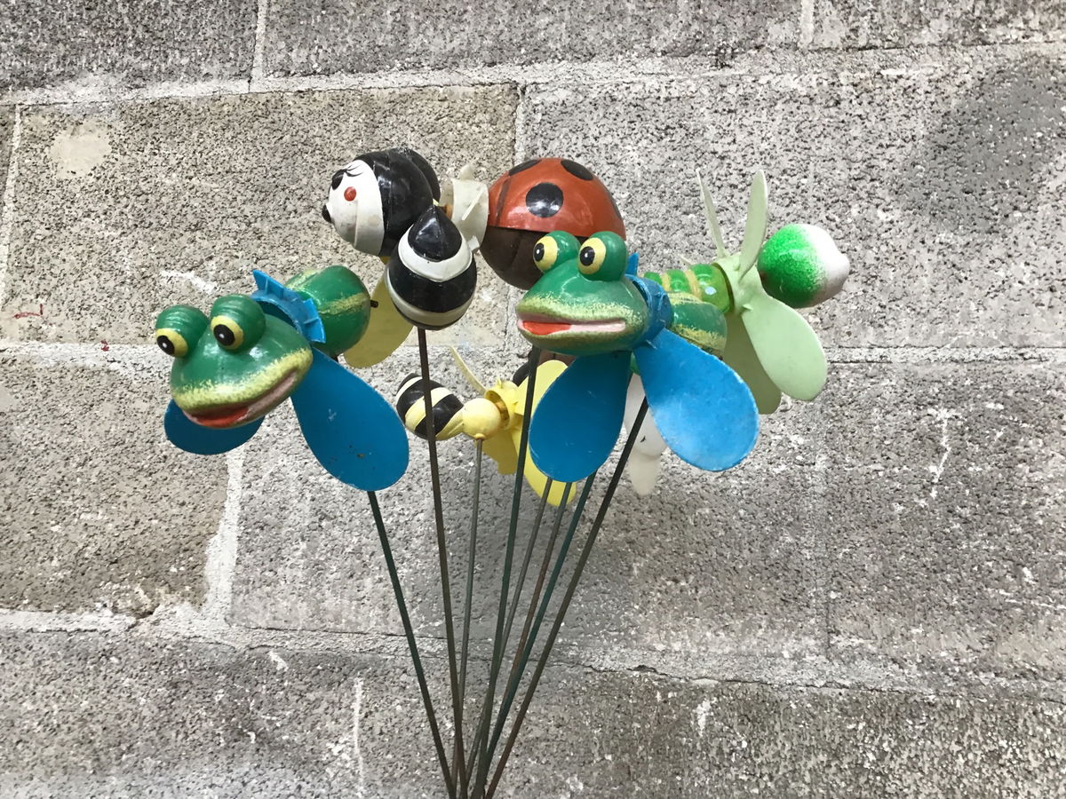 A bundle of cute and kooky vintage pinwheel critters for your garden! Most of the plastic spinners are in bad shape after years in the sun, but you could easily replace them for a fun afternoon project.