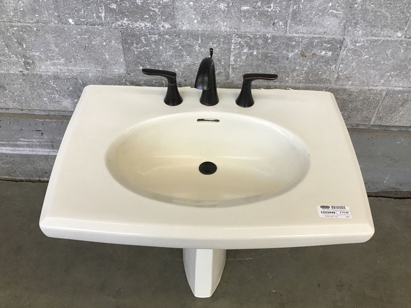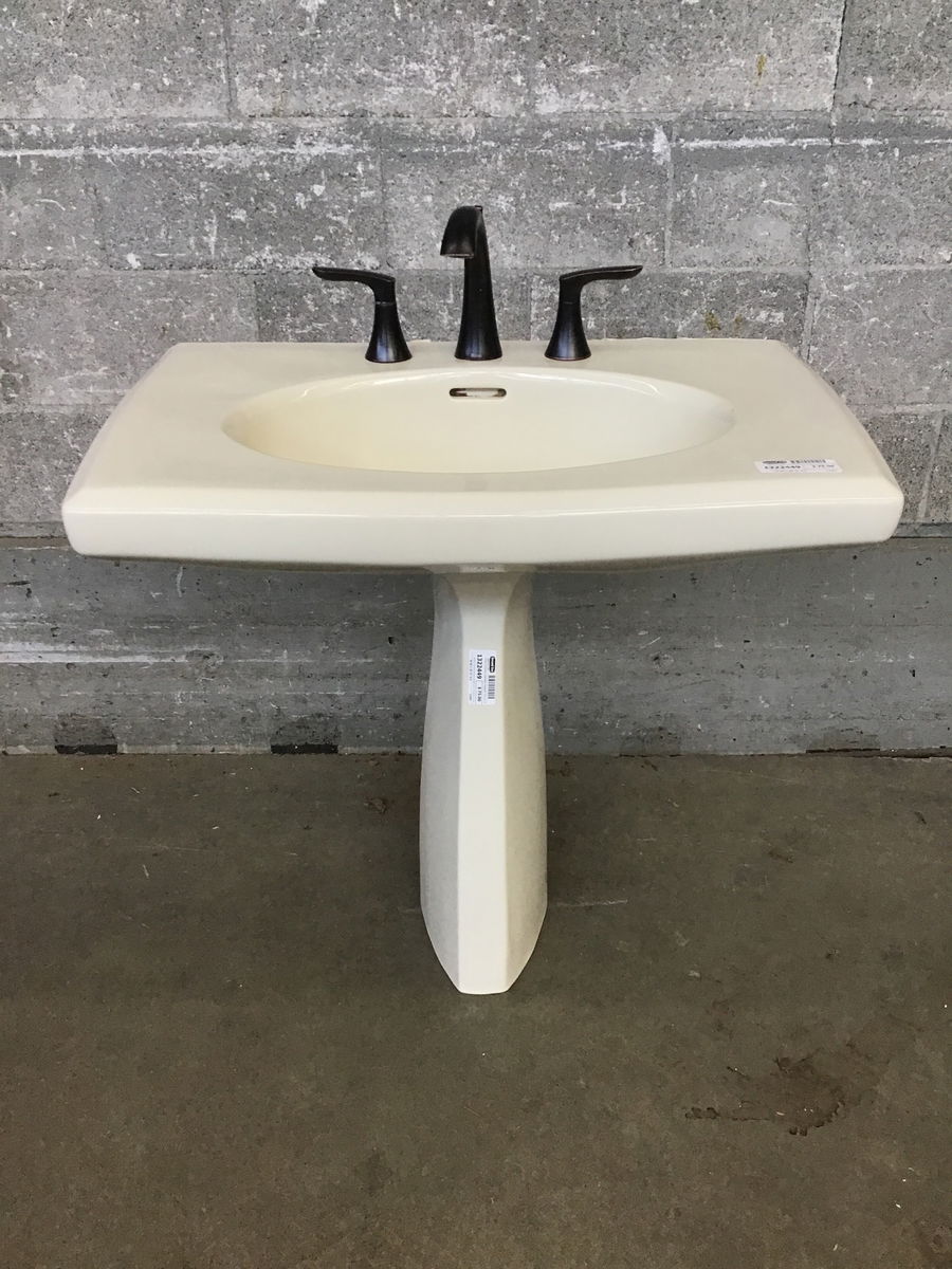Cream American Standard Pedestal Sink w/ Oil Rubbed Bronze Faucet