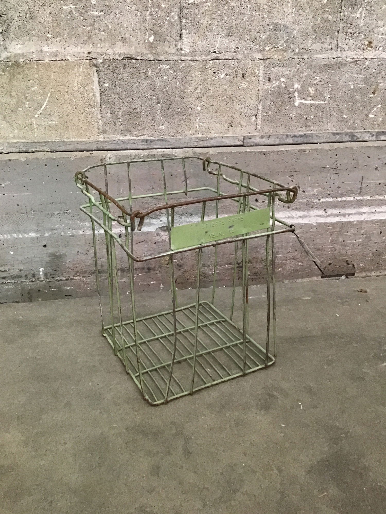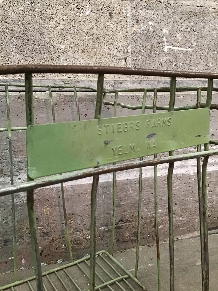 A vintage metal basker from Stuebrs Farms in Yelm Washington. This would make an excellent piece of PNW home decor.