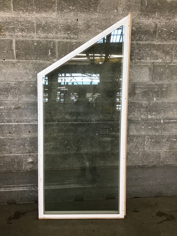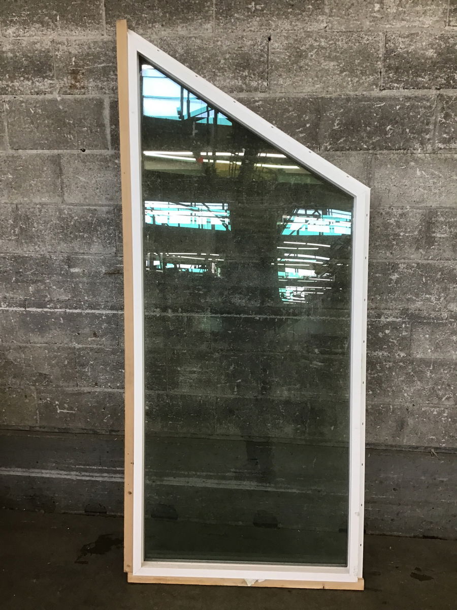 This is a like new, never installed fixed window that tapers from 79.625" to 58".