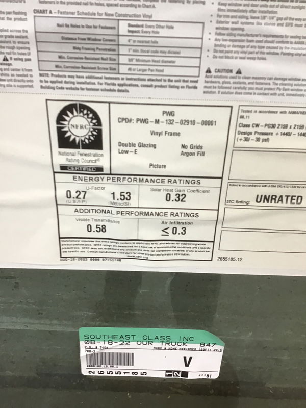 Never installed fixed window from PlyGem, BUT it was stored incorrectly on its edge that didn't have stops. The insulated glass unit has slid inside the vinyl frame--to the point that there is an air gap between the glass and the vinyl stop strip. Price reflects condition.