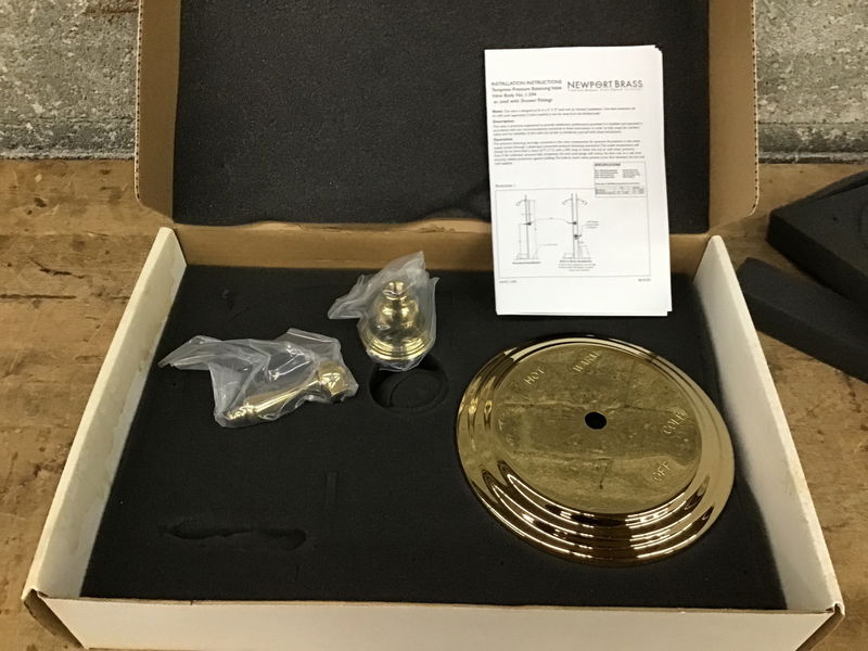 NIB shower trim plate from Newport Brass' Seaport collection in French Gold finish. Fancayyyy! Retails for $370 at Ferguson Home.