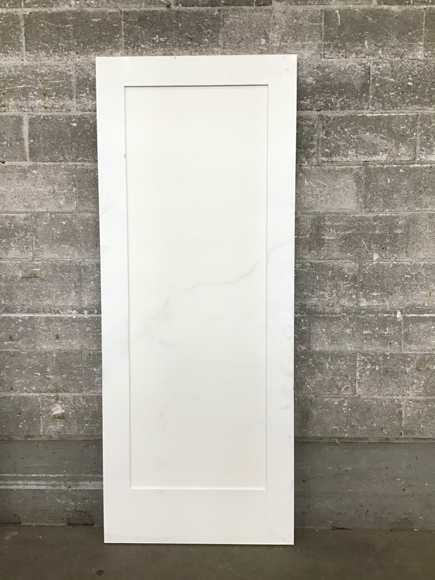 Uncut and undrilled single panel primed masonite shaker interior door. Has a little donk which is reflected in the price.