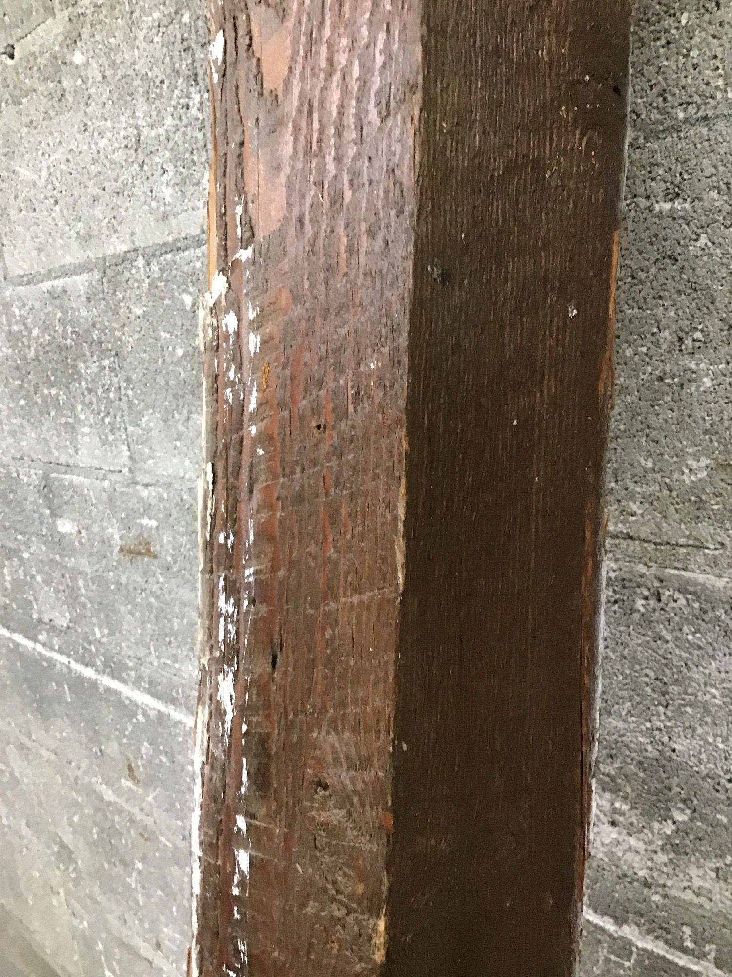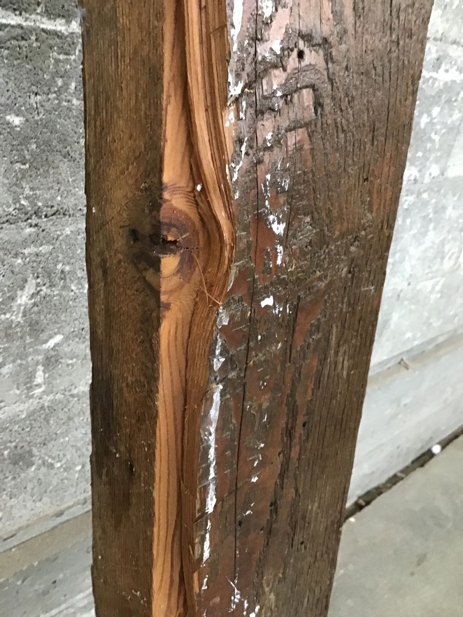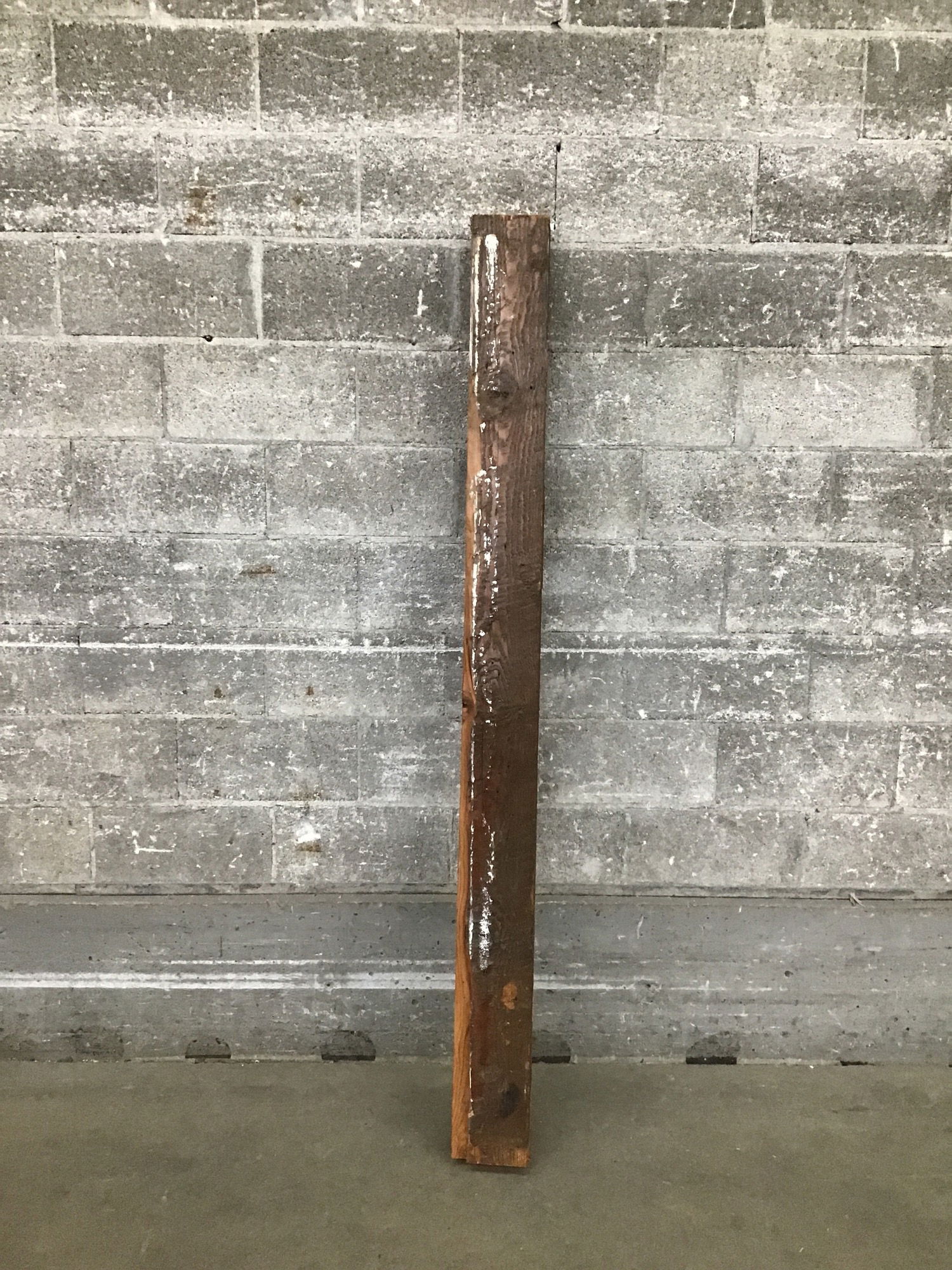 Rustic, rough sawn, reclaimed fir 4x6 that could make a fine mantel cap. This one has some finish on part of it and was "carved out" a bit on one edge. Price reflects condition.