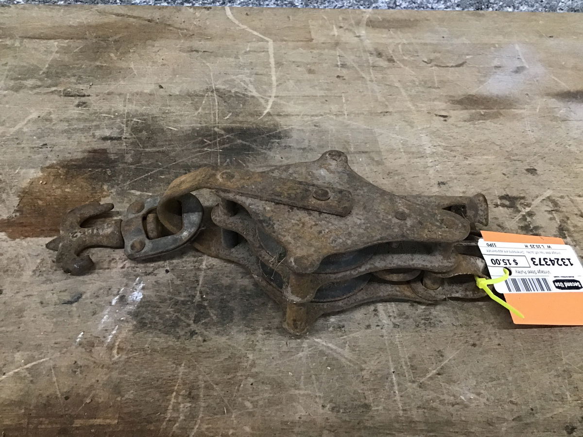 Vintage steel hay loft pulley. Dimensions are approximate.