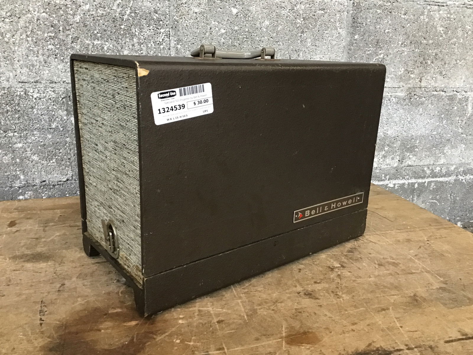 Here we have a working 35mm film projector called Specialist 500 by Bell and Howell. Tested in house and seems to be very very functional. Includes a carrying case for storage.