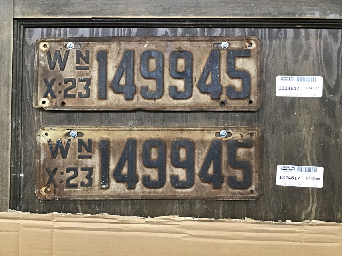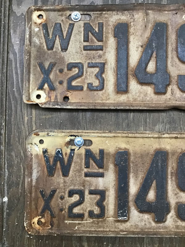 Matched set of 1923 Washington license plates that show some authentic wear and surface rust, but are still solid.