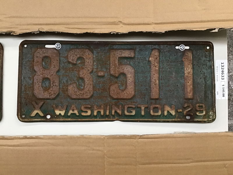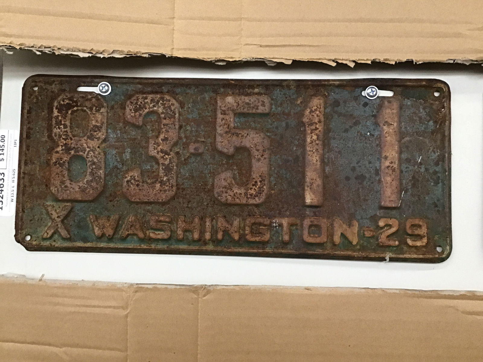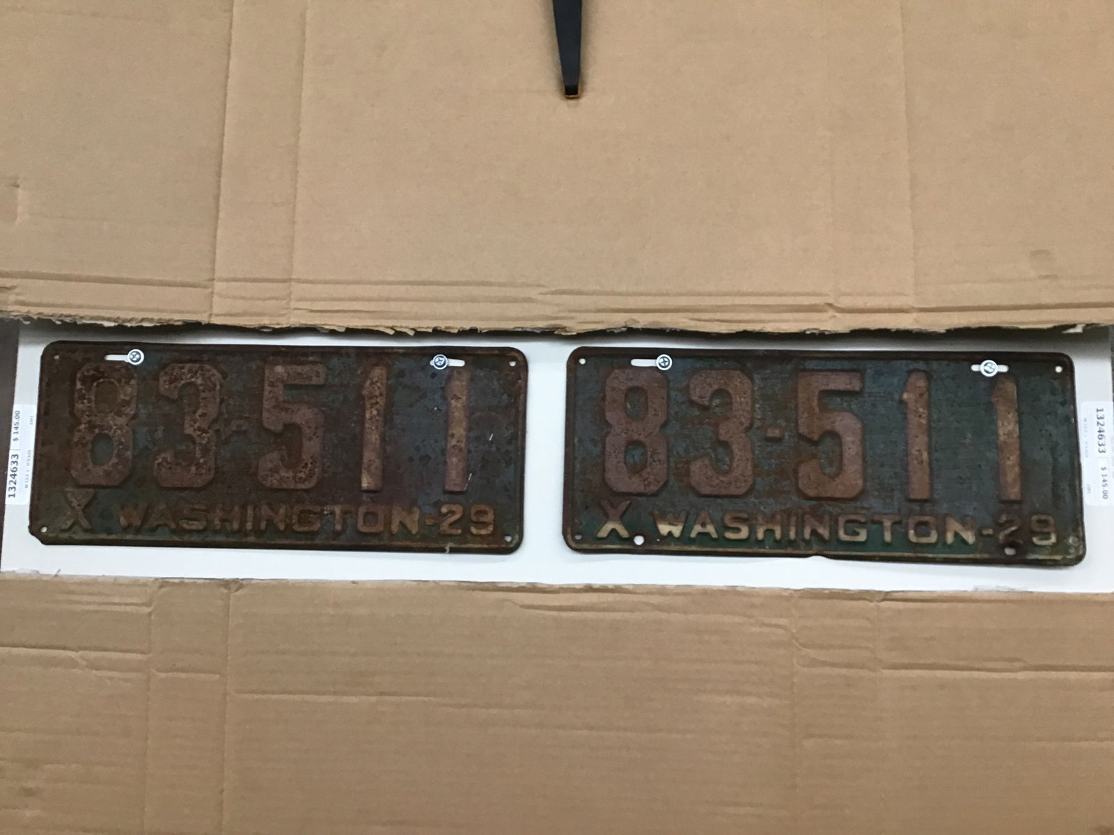 Matched pair of 1929 Washington license plate that show some authentic wear and surface rust, but still solid.