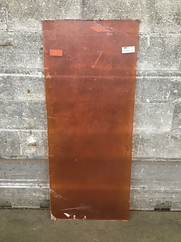 3/8" thickness, translucent amber (burnt orange) matte finish remnant of a high end acrylic/resin/polycarbonate type of material. Still has protective film on it.