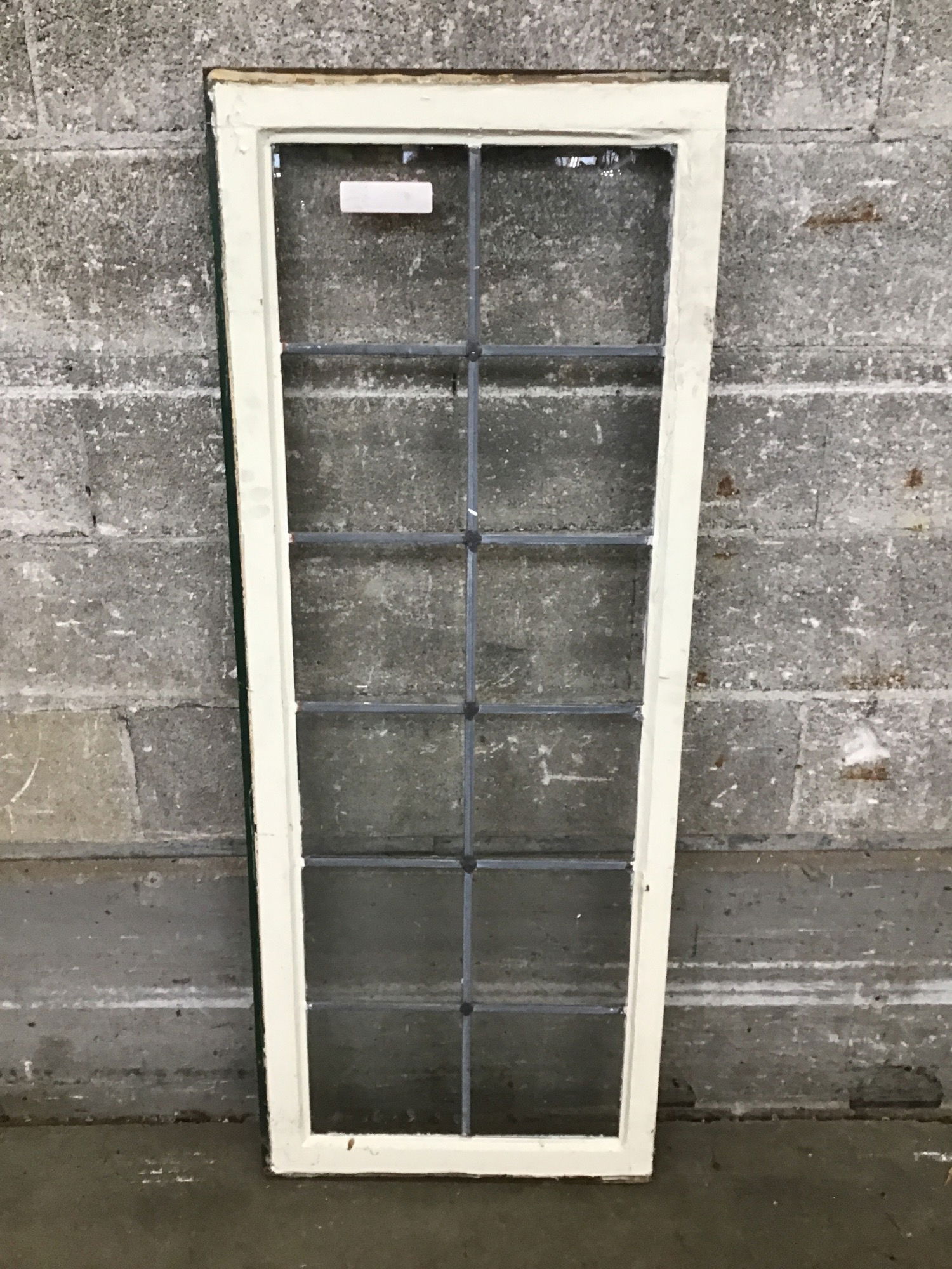 Lead Divided Fir Window Sash that is painted on one side. One lite is cracked.