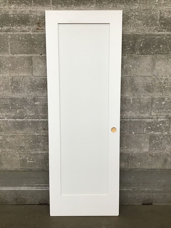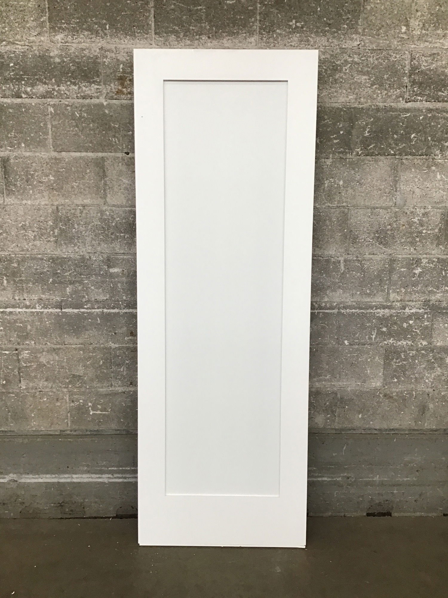 Shaker style, single panel interior bypass door made by Trimlite. Has never been installed and has a professional white painted finish.