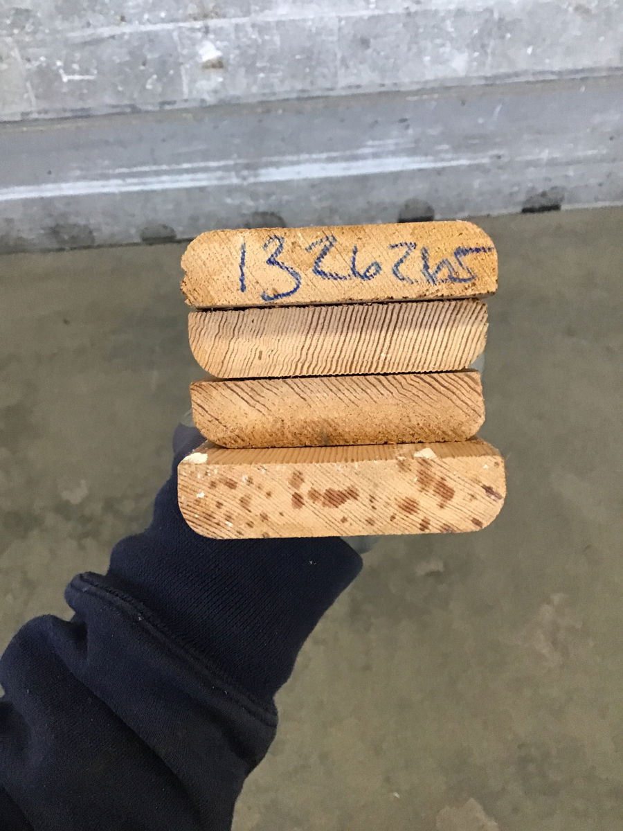 Approximately 24 LF of stained fir casing with just a bit of white paint around the edges. Lot includes four boards measuring just over 72" each.
