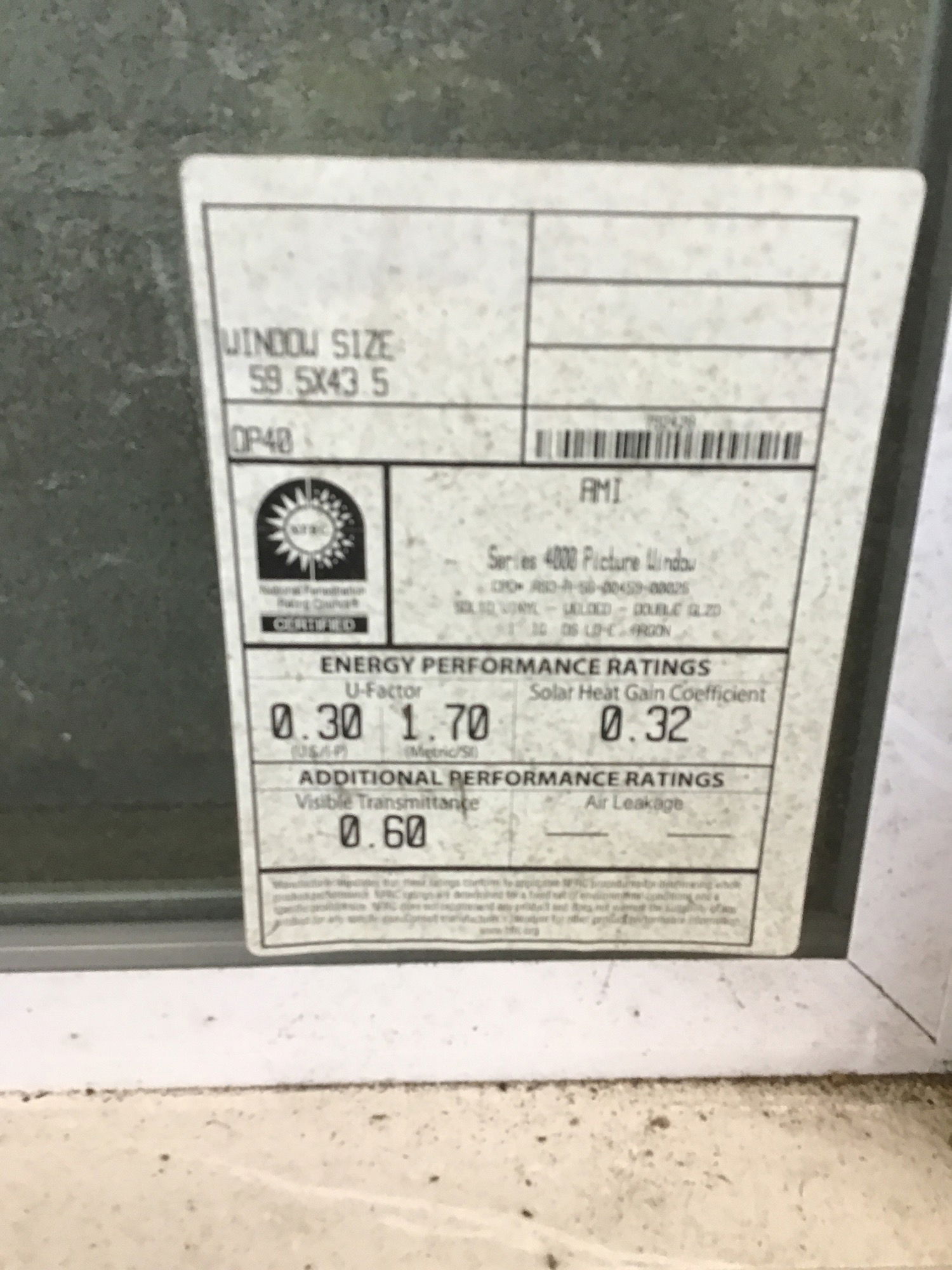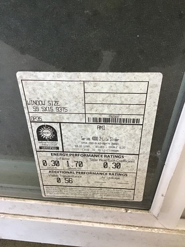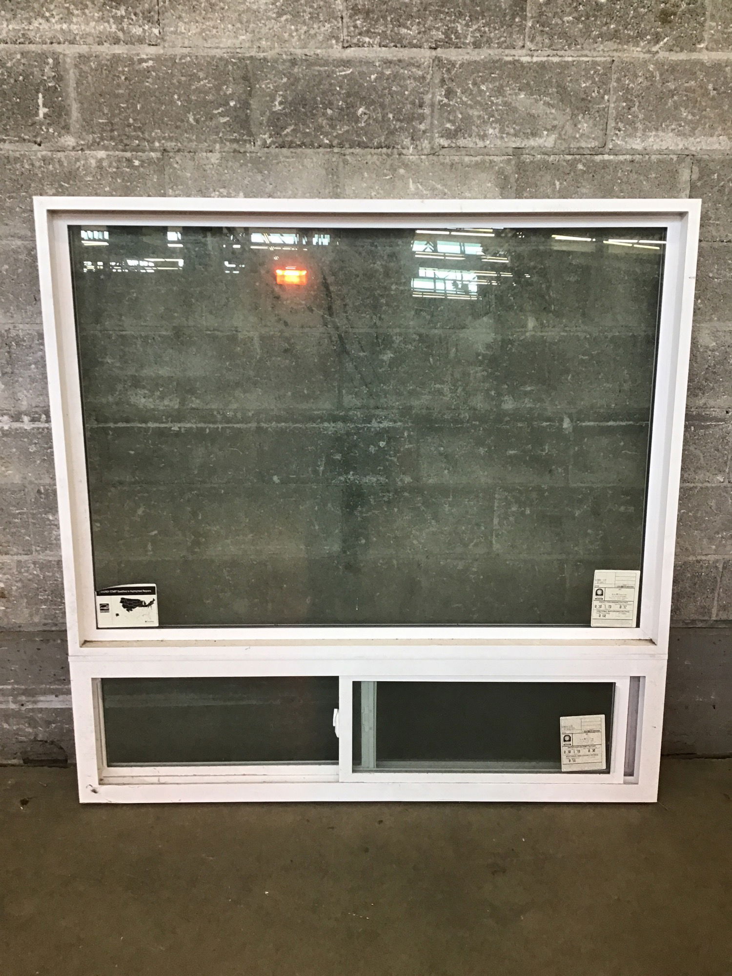 5x5 Vinyl Slider Window that has a tiny slide portion underneath a large picture window. New, old stock.