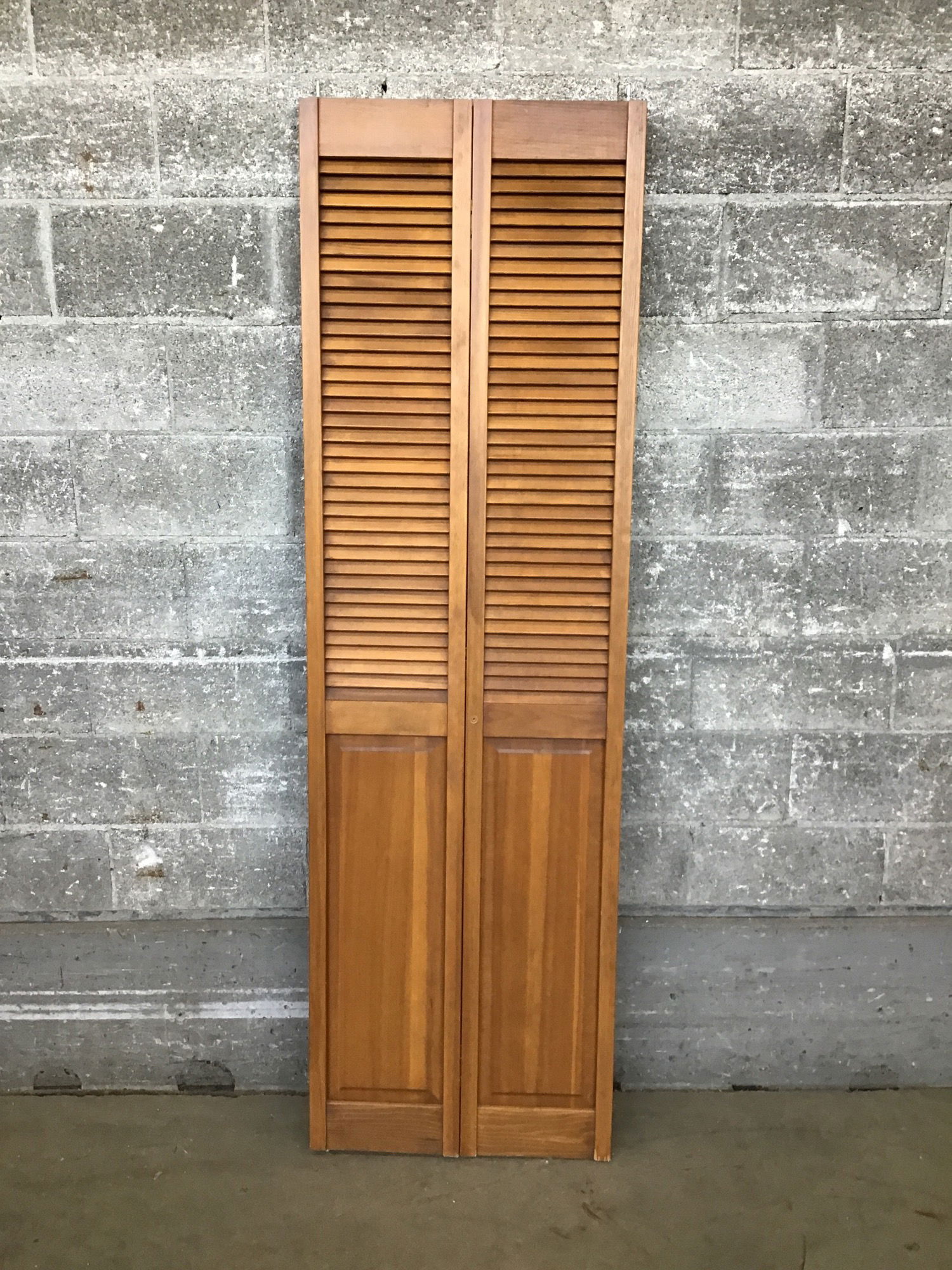 Louver & Panel Bi-Fold Door with a warm stain on the fir.