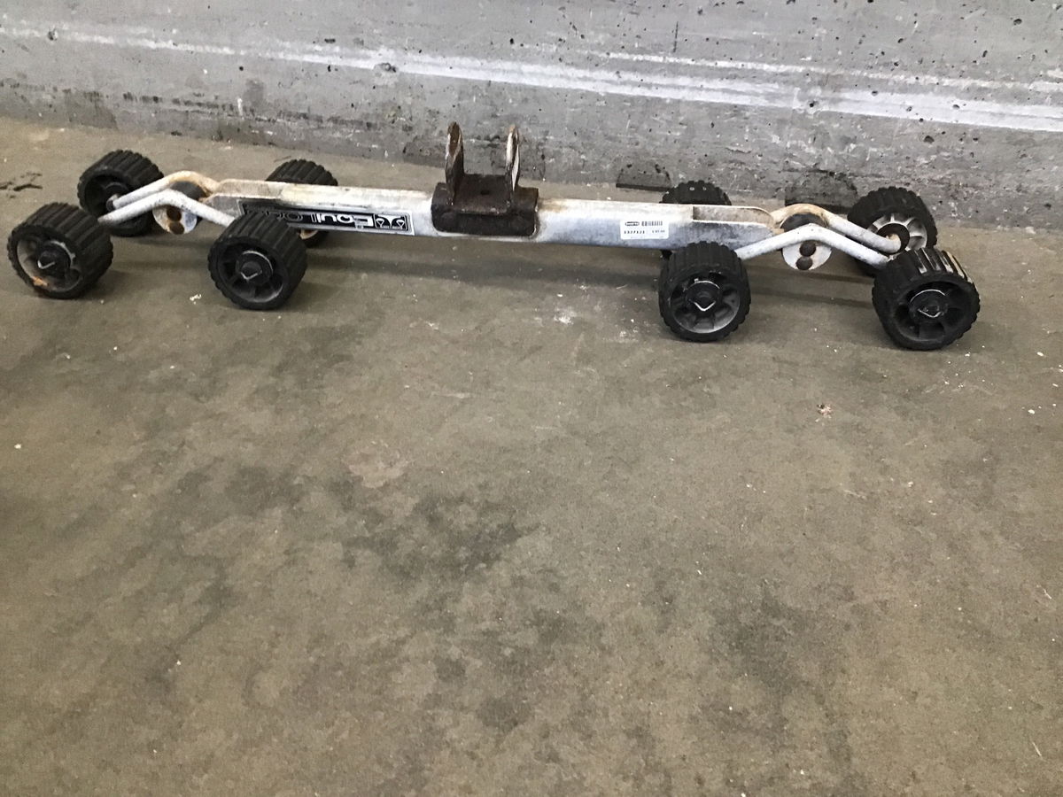 Here we have an Equiload Shore Land'r Support arm with rolling wheels attached. Use this as trailer attachments to assist in loading and unloading boats in and out of the water. It is a bit rusty but could be cleaned up. The center bracket alone retails for $169.99.
