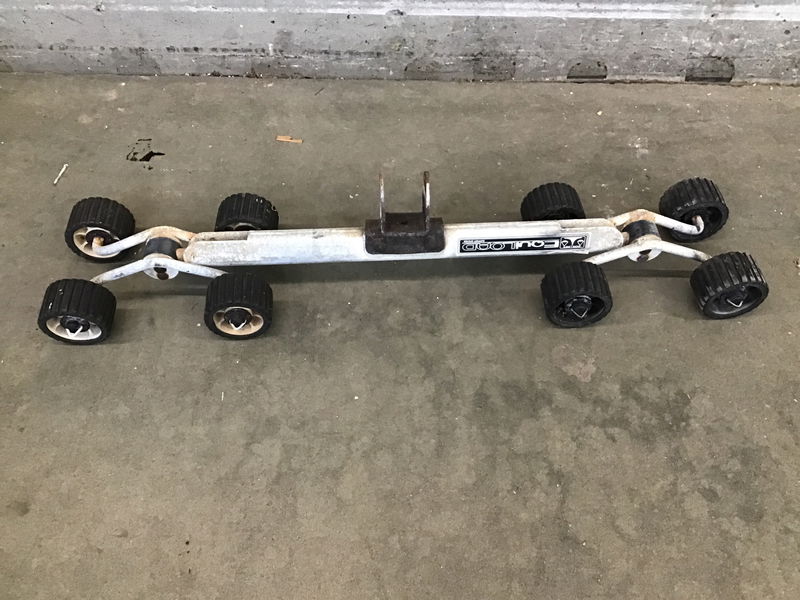 Here we have an Equiload Shore Land'r Support arm with rolling wheels attached. Use this as trailer attachments to assist in loading and unloading boats in and out of the water. It is a bit rusty but could be cleaned up. The center bracket alone retails for $169.99.