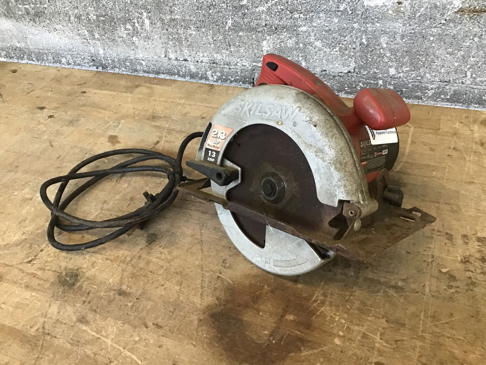 Here we have a rather rusty but still working Skilsaw power saw. Model 5480. Tested in house and appears very functional.