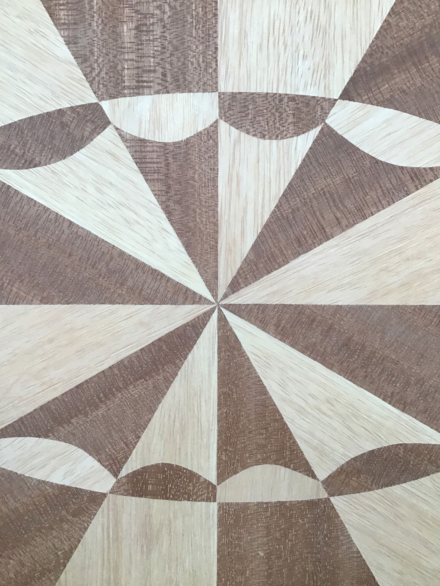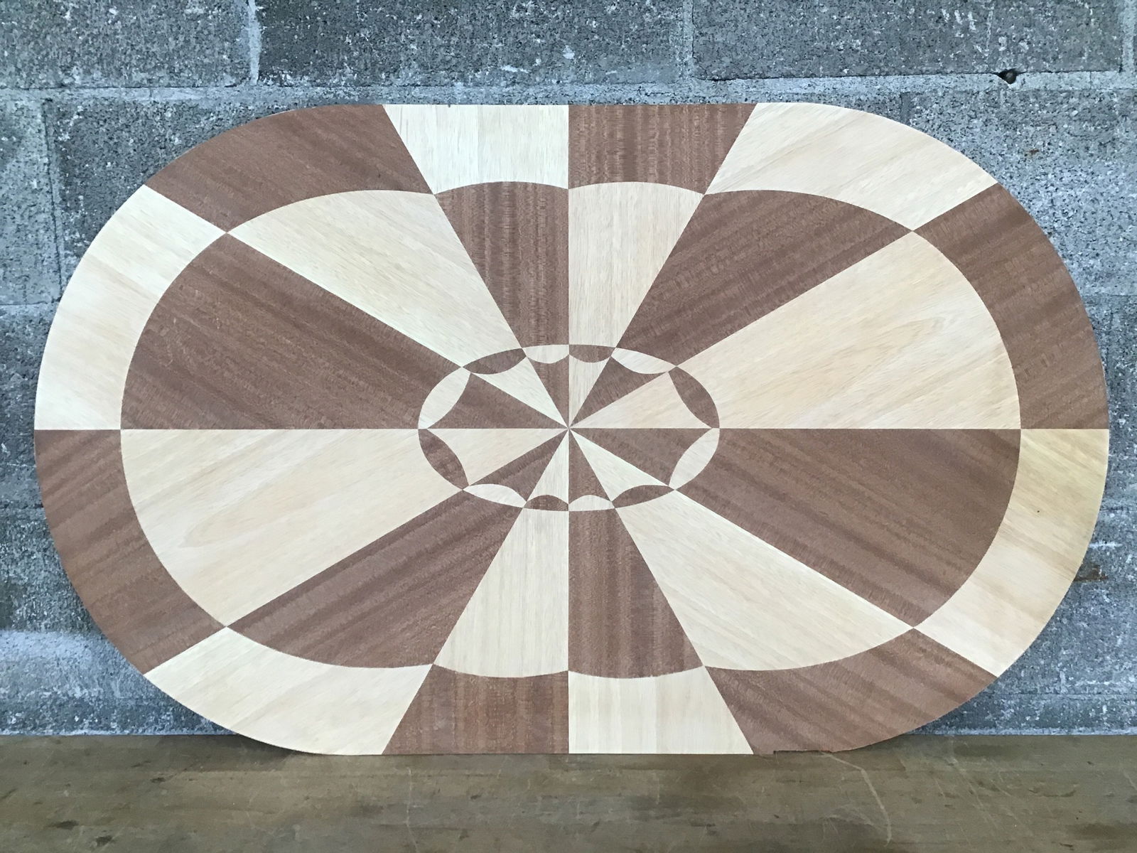 1/16" Thick veneer panel with ornate design. This one is bigger and looks to be made with dark Honduran and light Philippine mahogany for a really nice contrast. Just out of original packaging. Item may have cosmetic damage.  Photo may be representational.