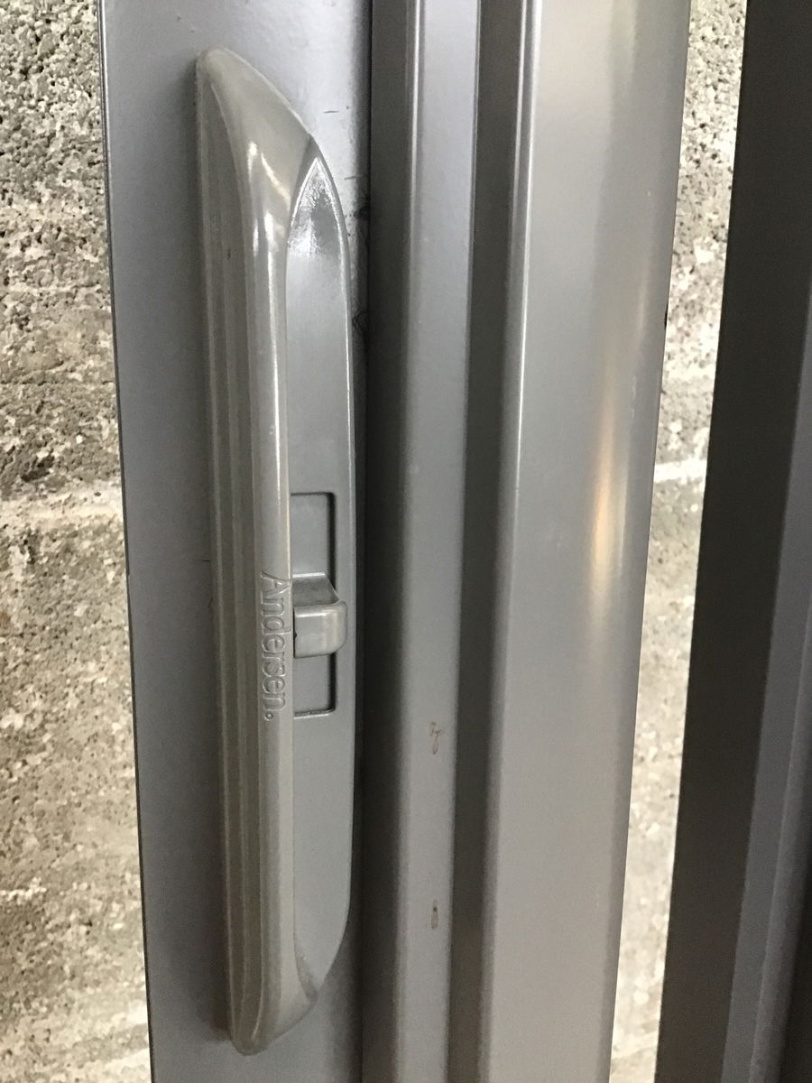 Andersen retractable aluminum framed screen door. Bottom & top tracks have been shortened for a ~36" wide door, but the screen telescopes out to 48"+. You might be able to order new tracks if you wanted to use all of it. Supplier said it didn't do well keeping their cat inside. Seems in pretty good condition.